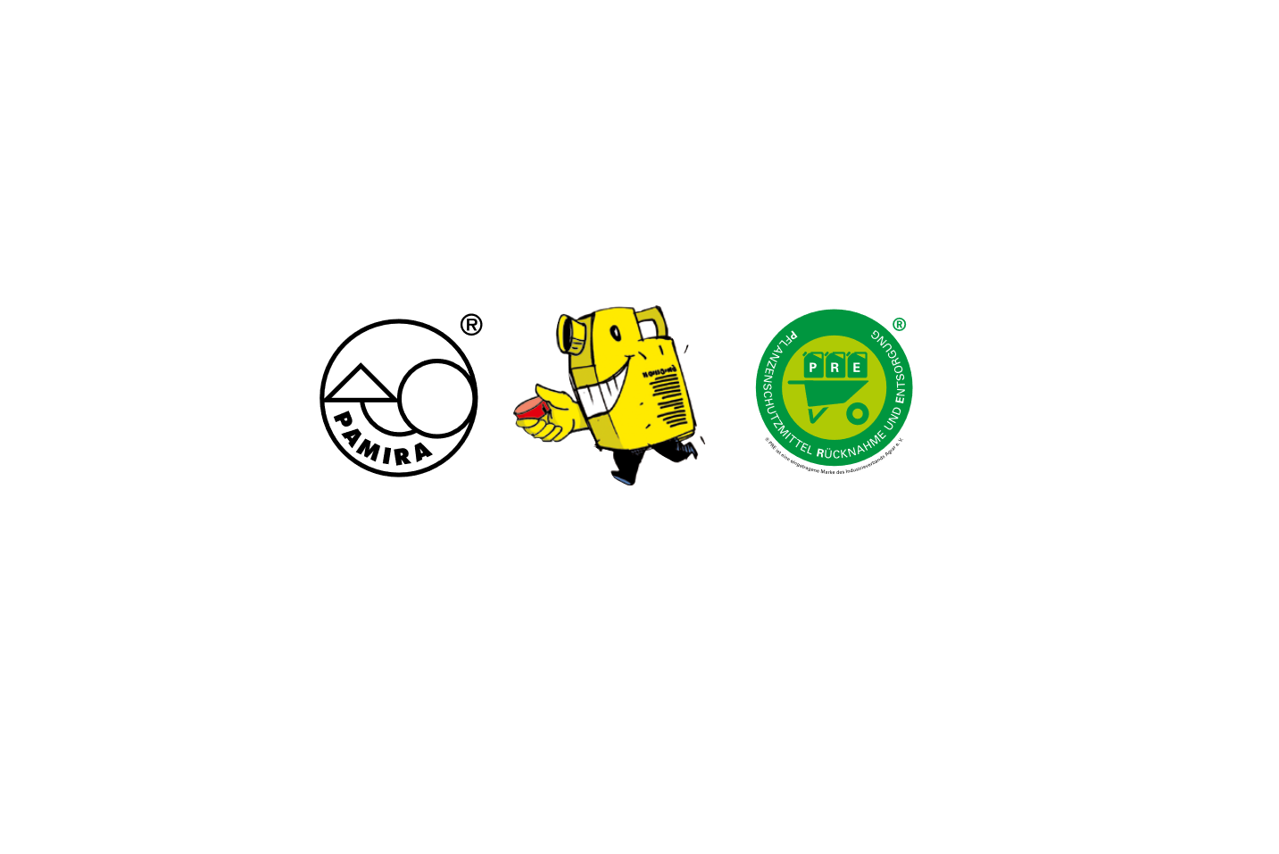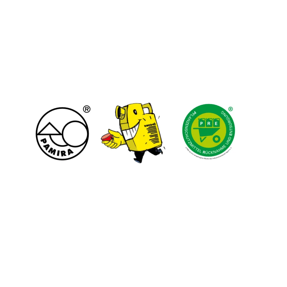 - Mit dem Zeichen PAMIRA gekennzeichnete Packmittel zur PAMIRA-Sammlung bringen (Sammelstellen und Termine unter www.pamira.de), ansonsten nach Instruktion in der Gebrauchsanleitung handeln