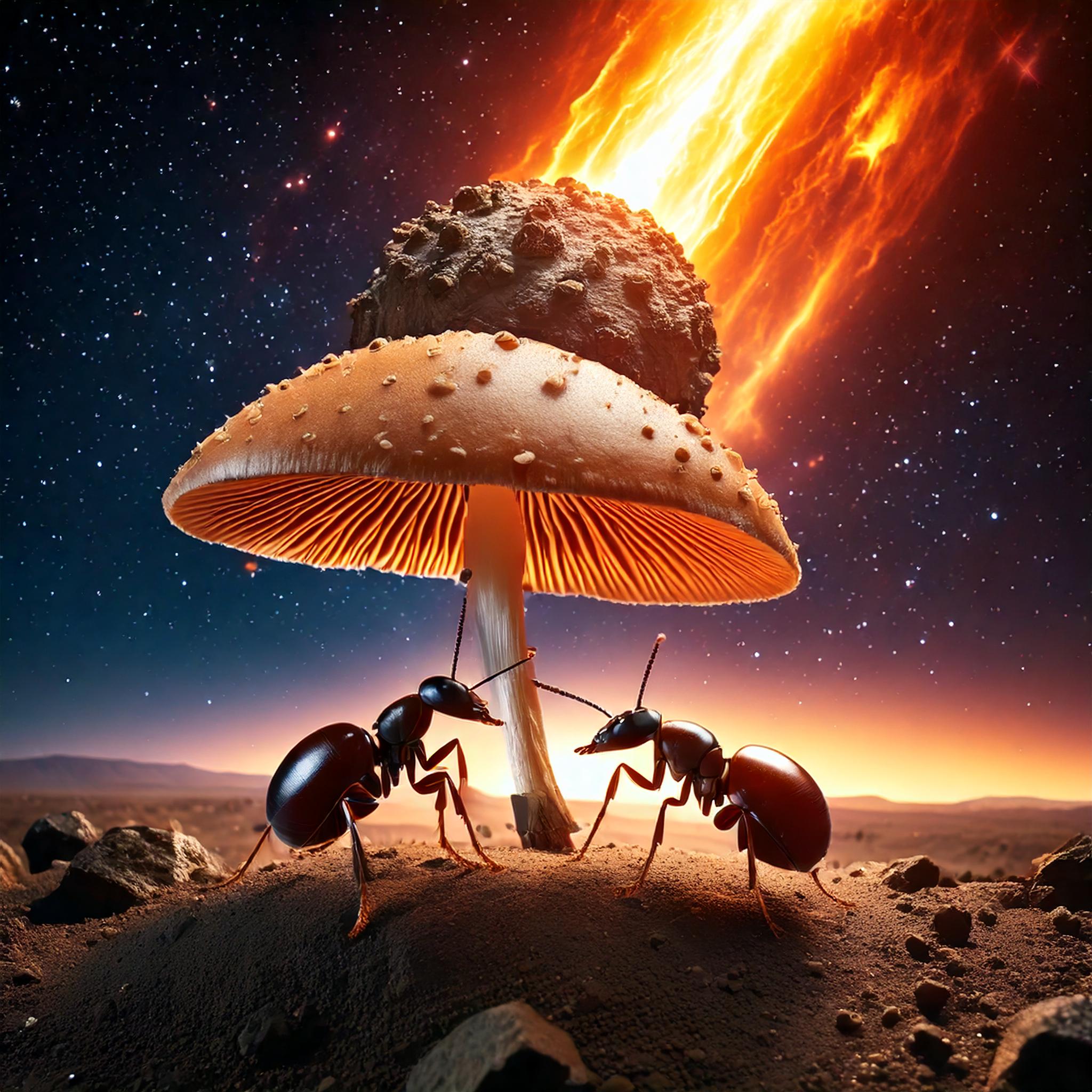 Einen erst unlängst fertiggestellten Evolutionsbaum für 475 Pilz-Arten kombinierten die Hohenheimer Wissenschaftler mit einem Baum für 276 Ameisen-Arten. Dieser Abgleich ergab, dass ein gemeinsamer Vorfahr sowohl bei den pilzzüchtenden Ameisen als auch bei den Pilzen vor etwa 66 Millionen Jahren lebte – kurz nach dem Einschlag eines Asteroiden im Bereich der heutigen mexikanischen Halbinsel Yucatán, der das Aussterben der Dinosaurier auslöste. Dieser Moment markiert eine wichtige Phase in der Erdgeschichte, nicht nur für die Großreptilien. Abkühlung und Dunkelheit führten auch zu einem Massensterben vieler Pflanzenarten, was den Pilzen einen evolutionären Vorteil verschaffte. „Das könnte ein Schlüsselfaktor dafür gewesen sein, dass Ameisen sich verstärkt auf Pilze spezialisierten“, vermutet Rabeling.