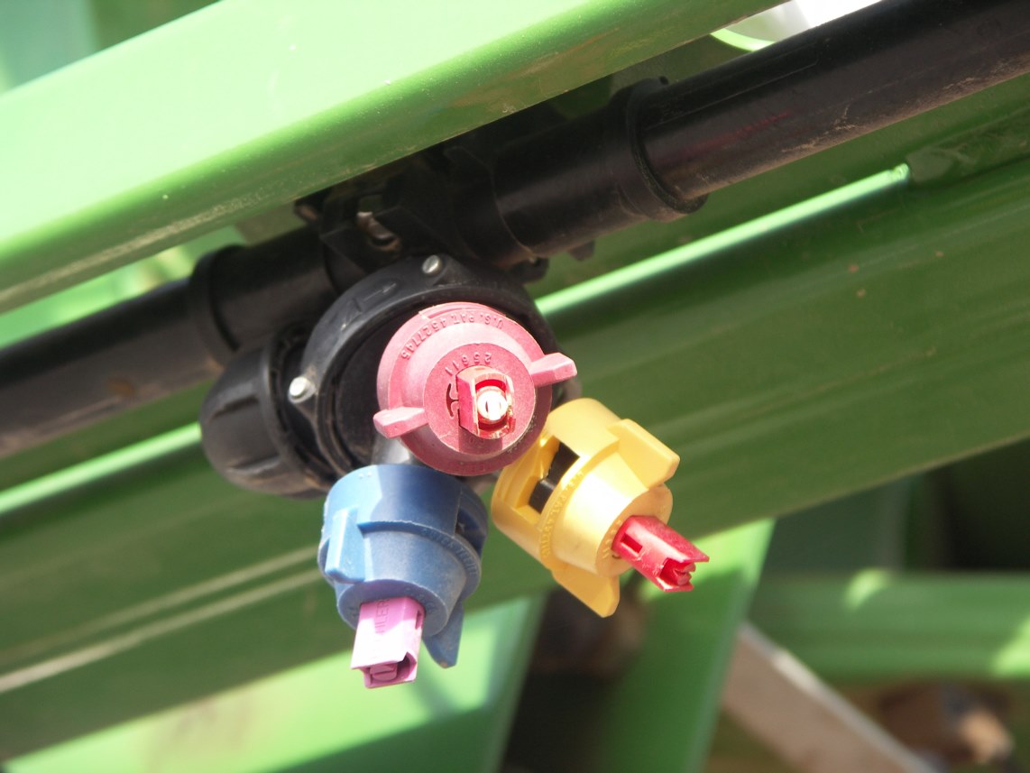 Ist die Pflanzenschutzspritze gefüllt und fertig für den Einsatz, stellt sich der Landwirt die Frage nach der optimalen Düse. „Eine(r) für alle“ gilt in Mannschaftssportarten, aber nicht auf dem Acker. Je nach Einsatzzweck wählt der Experte den passenden Typ. Die verschiedenen Düsen produzieren unterschiedlich große Tropfen, sprühen in unterschiedlichen Winkeln und mit unterschiedlichem Druck. Für die Ungrasbekämpfung werden beispielsweise feintropfige Düsen benötigt, um die oft noch sehr kleinen Gräser auch zu treffen. In der Nähe von Wasserläufen setzen Landwirte grobtropfige Düsen ein, damit selbst bei leichtem Wind nichts ins Wasser geweht werden kann. Zur Behandlung von Getreideähren gibt es spezielle Düsen, die nach vorne und hinten sprühen und die Ähren rundum benetzen. Über 1000 verschiedene Typen sind auf dem Markt. An Geräten mit Mehrfachdüsenkörpern sind drei oder vier verschiedene Typen vormontiert. Mit dieser Auswahl decken die Anwender die meisten Einsatzzwecke ab.