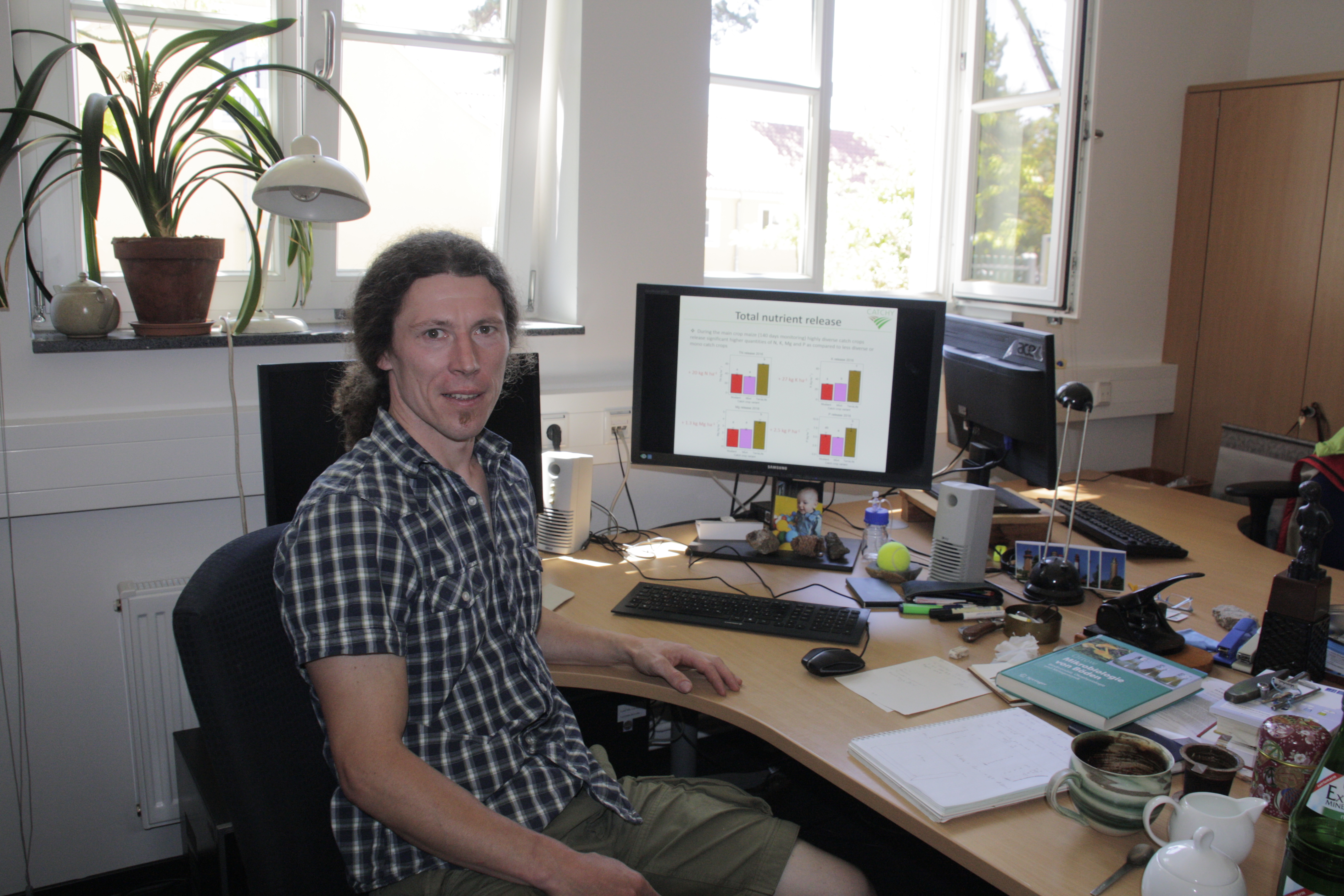 Dr. Norman Gentsch verglich dabei eine artenreiche Zwischenfruchtmischung mit einer Vierer-Mischung, Reinsaaten und der Brache (ungenutzte Fläche) als Kontrolle. Bereits nach der ersten Rotation der dreijährigen Fruchtfolge wurden erste Effekte der artenreichen Zwischenfrucht-Mischungen sichtbar. Die verschiedenen Pflanzen sind unterschiedlich an bestimmte Stressbedingungen, wie zum Beispiel Trockenheit, bestimmte Krankheitserreger oder Schädlinge, angepasst und können diese besser abpuffern als weniger angepasste Pflanzen. „Dadurch wird Stabilität in den Erträgen gewährleistet. Je vielfältiger die Artenmischung, umso stressresistenter wird das Anbausystem. Das erhöht die sogenannten Ökosystemdienstleistungen wie die natürliche Filtration, die Kohlenstoffanreicherung, verbessert die Nährstoffflüsse und vermindert die Bodenerosion“, erklärt der Bodenkunde-Wissenschaftler.