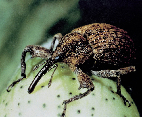 Der Baumwollkapselkäfer (Anthonomus grandis) ist nur etwa acht Millimeter lang, einschließlich seines Rüssels, der die halbe Körperlänge ausmacht. Die Käferweibchen beißen Löcher in die Blütenknospen und Samenkapseln der Baumwollpflanze und legen dort ihre Eier ab. Später fressen die Larven Knospen und Kapseln leer. Die Samen und mit ihnen die langen weißen Samenhaare, die schon seit Jahrtausenden für Textilien genutzt werden, gehen verloren.