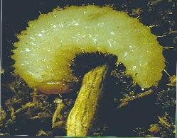 Bis zu 1 000 Eier legen die Käfer von Juli bis Oktober an die Wurzeln ihrer Wirtspflanzen oder in das Bodensubstrat. Nach wenigen Wochen schlüpfen weiße, runzlige und fußlose bis 12 mm große, bauchwärts gekrümmte Larven mit einer braunen Kopfkapsel. Sie beginnen zunächst Wurzelhaare und dann zunehmend größere Wurzelteile abzufressen, bis die Wurzeln vollständig entrindet sind. Auch der Wurzelhals und die Stammbasis sind für sie nicht tabu. So geht es beispielsweise den Wurzeln von Primeln oder der Knolle des Alpenveilchens an „den Kragen“. Wenn die Pflanzen zu welken beginnen, ist es oft schon für eine Rettung zu spät, weil die Wurzeln zerstört sind.