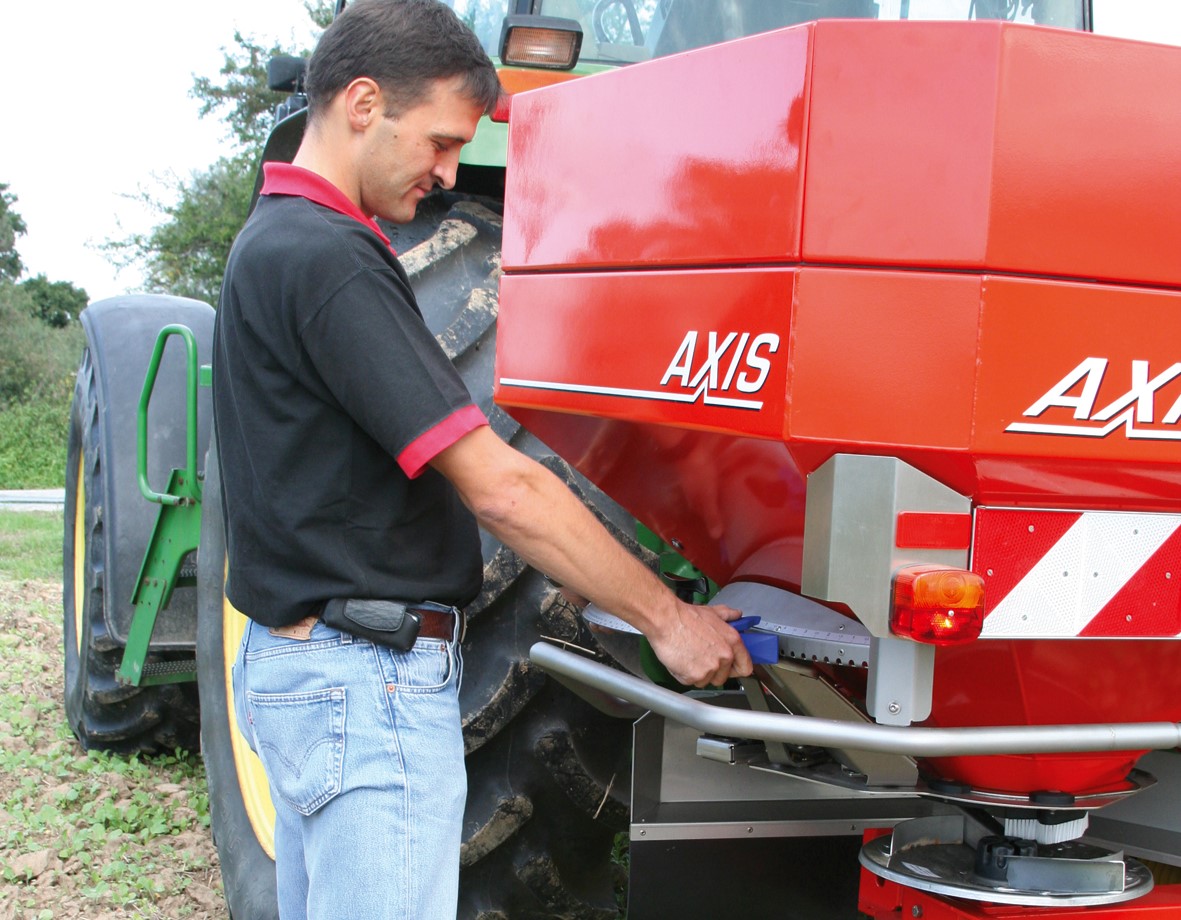 Ob die Körner wirklich so weit fliegen und ob die gewünschte Menge auf die Streuscheiben rieselt, hängt vom Dünger ab. Die Landwirte stellen anhand von Tabellen das Streuwerk ihres Düngerstreuers darauf ein. Ein wichtiges Hilfsmittel ist eine Wiegeeinrichtung an der Maschine, die während der Arbeit ständig prüft und nachregelt, damit die vorher im Bordrechner eingegebene Menge pro Hektar tatsächlich auch ausgebracht wird.