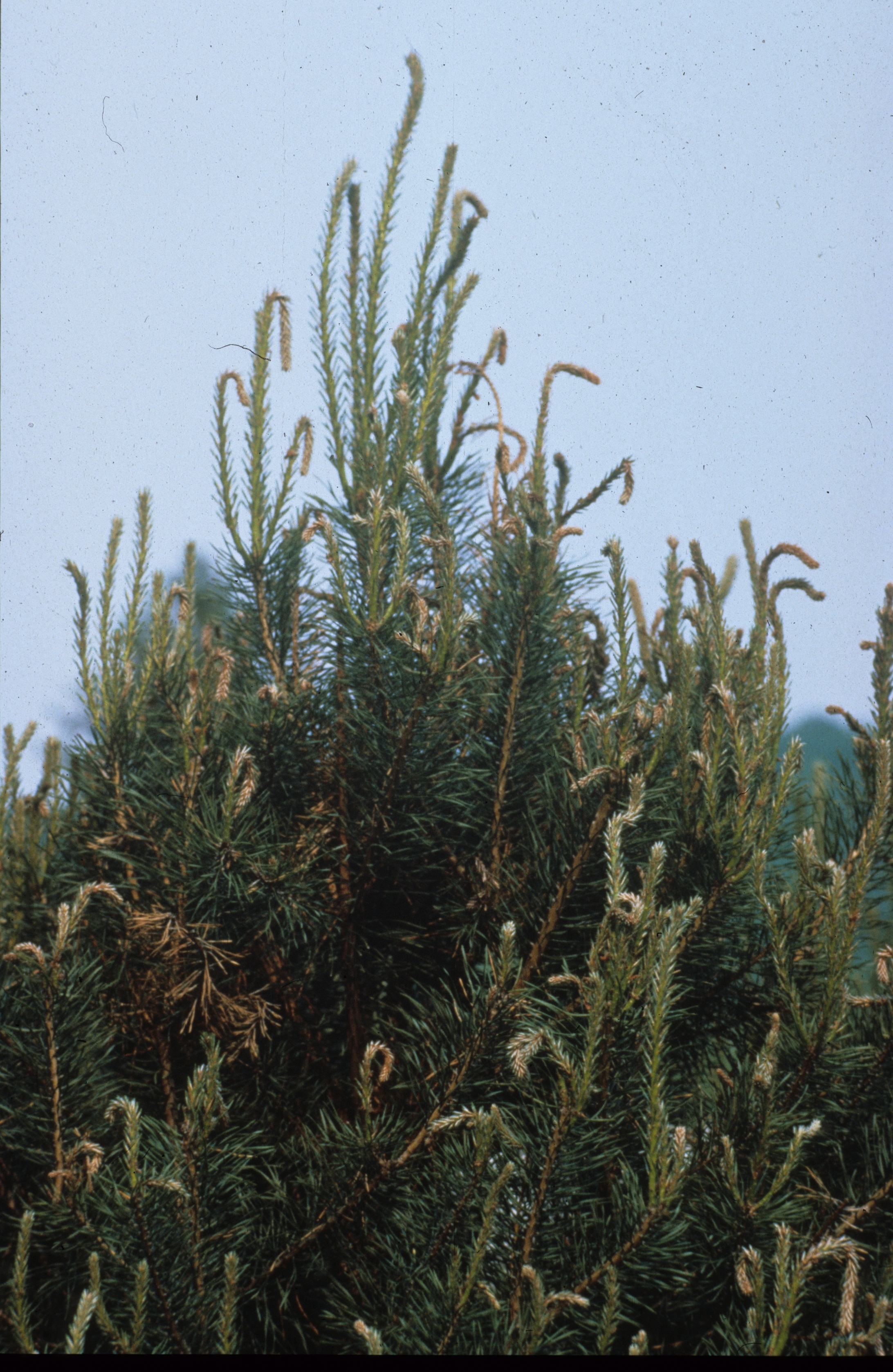 „Solche Pathogene an Nadelgehölzen bekommen plötzlich eine größere Bedeutung. Wir kannten sie bisher eher aus dem mediterranen Raum, südlich der Alpen. Bei uns trat das Diplodia-Triebsterben nur in bescheidenem Umfang auf. Dass es so massiv wird, haben wir nicht erwartet“, berichtet Wulf. Das Triebsterben wird von dem Wärme liebenden Pilz Sphaeropsis sapinea verursacht. Dieser schädigt vor allem die jungen, im Wachstum befindlichen Lang- und Kurztriebe an zwei- oder dreinadeligen Kiefern. Sie verfärben sich braun und sterben ab. Gleichzeitig können Kronenteile und im Extremfall sogar ganze Bäume zu Grunde gehen. Im abgestorbenen Rindengewebe entwickeln sich schwarze, rundliche Pilzfruchtkörper von etwa einem Millimeter Größe. Im Stammholz ruft der Pilz durch die Besiedlung mit dem dunklen Pilzmyzel die so genannte Holzbläue hervor.