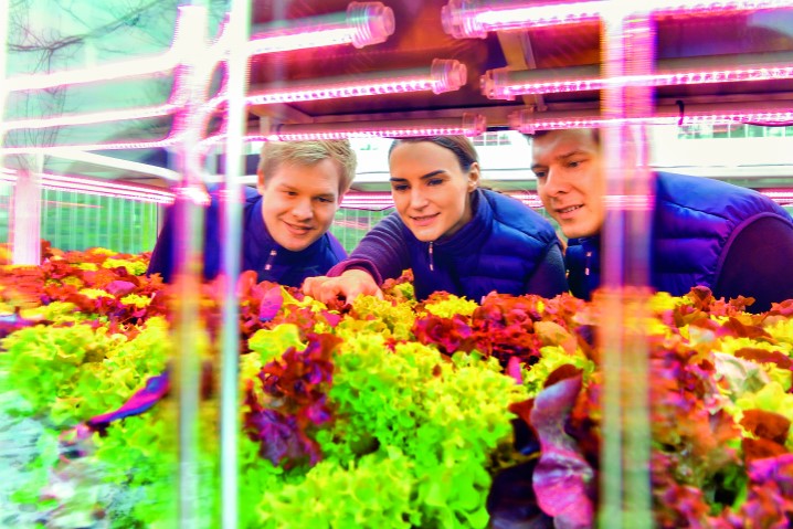 Unter dem Begriff „Urban Farming“ werden Konzepte erforscht, die sich mit dem Anbau von Pflanzen im städtischen Raum beschäftigen. Darunter werden verschiedene Anbaumethoden zusammengefasst. Aquaponic ist ein Zusammenspiel der Aufzucht von Fischen in Aquakulturen und der Kultivierung von Nutzpflanzen in Hydrokulturen, zum Beispiel Gemüse und Kräuter. Fische und Pflanzen nutzen sich bei dem System gegenseitig: Was die Fische ausscheiden, wird durch Bakterien aufbereitet und dient dann als Dünger für die Pflanzen. Die Pflanzen reinigen im Gegenzug das Wasser der Fische. Der Wasserverbrauch ist in diesem System deutlich geringer als bei herkömmlichen Feldern und die Pflanzen reifen schneller.