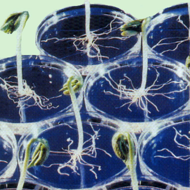Das Nährmedium in Petrischalen wurde mit gentechnisch veränderten Zellkulturen (Kallus) beimpft. Daraus haben sich Jungpflanzen entwickelt, die ebenfalls gentechnisch verändert sind.
