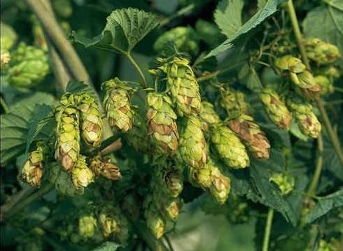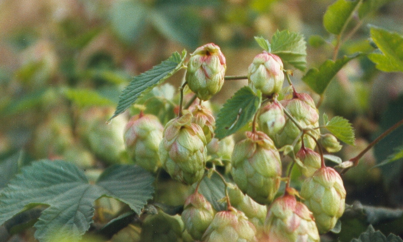 Von der Hopfenpflanze, die zur Familie der Hanfgewächse gehört, werden nur die weiblichen Pflanzen genutzt. Ihre Blüten bilden 2 – 4 Zentimeter lange, grünlich- gelbe Blütenstände, die Hopfenzapfen. Sie enthalten verschiedene Bitterstoffe, ätherische Öle, Gerbstoffe sowie in sehr geringen Mengen auch pharmazeutisch wirksame Substanzen. Einige der Inhaltsstoffe haben eine beruhigende Wirkung und werden als Schlaf- und Nervenmittel genutzt. Schon in einem 1864 erschienenen „Handbuch der speziellen Arzneimittel“ wurde Hopfen auch gegen Appetitlosigkeit bei Magenkatarrhen und für die Magenschleimhaut empfohlen. Derzeit rücken Inhaltsstoffe der Hopfenzapfen in den Fokus, die Wechseljahresbeschwerden und der Entstehung von Krebs entgegenwirken. Diese Inhaltsstoffe sind jedoch nur in sehr geringen Mengen in den Hopfenzapfen enthalten.