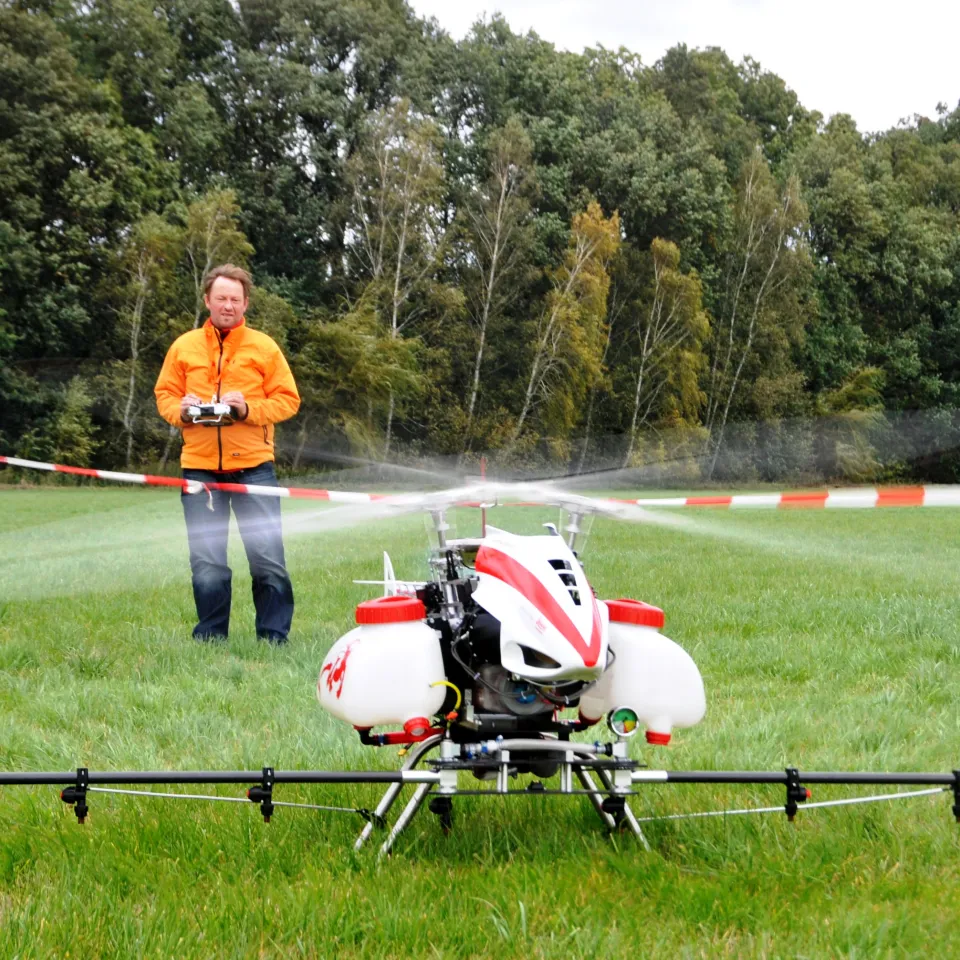 Der kleine Hubschrauber ist im Grunde ein fliegender Computer. Gerade einmal 65 Kilogramm schwer, sehr wendig und ungeheuer vielseitig. In der Nähe von Paplitz in Südbrandenburg drehte er seine Runden um einen vom Eichenprozessionsspinner befallenen Baum. An Bord 24 Liter einer farbigen, für Mensch und Tier unbedenklichen Lösung.Das ungewohnte Schauspiel könnte in Zukunft eine praktische Lösung für schwierige Fälle im Pflanzen- und Gesundheitsschutz darstellen. Zum Beispiel beim Eichenprozessionsspinner. Seine feinen Brennhaare können unter anderem juckende, entzündliche Hautreaktionen bis hin zu Entzündungen der Schleimhäute oder gar Schockreaktionen beim Menschen hervorrufen. In den Bäumen von Städten und Gemeinden ist er nicht einfach zu bekämpfen. Bislang mussten große, bemannte Hubschrauber oder Hebebühnen helfen. Als Basis zum Besprühen mit Pflanzenschutzmitteln oder zum Absaugen.