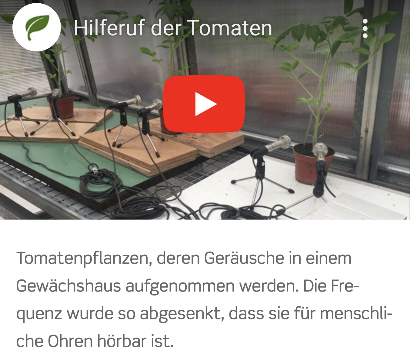 Diese faszinierende Tatsache haben Wissenschaftler der Universität Tel Aviv entdeckt: Wenn Tomaten gestresst sind, zum Beispiel durch Wassermangel oder Beschneiden, dann senden sie für das menschliche Ohr nicht wahrnehmbare Ultraschall-Geräusche aus. Das Team um Evolutionsbiologin Lilach Hadany hat Tomaten- und Tabakpflanzen belauscht und dabei herausgefunden, dass gestresste Pflanzen bis zu 50 Plopp-Laute pro Stunde abgeben – in einer Lautstärke, vergleichbar mit einem menschlichen Gespräch. Noch dazu unterschieden sich die aufgenommenen und für das menschliche Ohr hörbar gemachten Töne je nach Art des Stressfaktors: Ein Algorithmus konnte nach kurzem Training unterscheiden, ob die Tomate gerade durstig war oder ihr Pflanzenteile abgeschnitten wurden.