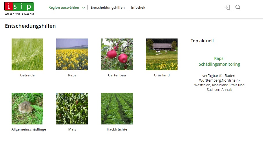Im Ackerbau kümmern wir uns beispielsweise um mehrere Pilzkrankheiten im Getreide, um Krautfäule und Kartoffelkäfer in Kartoffeln oder um Weißstängeligkeit im Raps. Im Gartenbau sind es unter anderem die Kohlfliege bei Kohl, Stemphylium im Spargel und Falscher Mehltau an Zwiebeln. Im Obstbau haben wir Simulationsmodelle zum Apfelwickler, Apfelschorf und Feuerbrand für Apfelanbauer oder zur Kräuselkrankheit bei Pfirsichen. Insgesamt laufen auf isip.de 22 durch die ZEPP entwickelte Modelle.