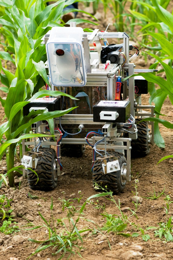 Es war im Jahr 2005. Die TU Dresden nahm erstmalig am Field Robot Event in Wageningen (Niederlande) Teil, den inoffiziellen Weltmeisterschaften für Feldroboter. Dort musste der Prototyp unter anderem durch geschwungene Maisreihen navigieren, am Reihenende wenden, Golfbälle finden, die Unkraut symbolisierten und Maispflanzen zählen. Aus der damaligen Studie in Spielzeuggröße ist mittlerweile ein stattliches Fahrzeug geworden: 2,75 Meter lang, 1,25 Meter breit, rund 2 200 Kilogramm schwer und mit einem 45 Kilowatt starken Dieselmotor ausgestattet. Im Unterschied zu herkömmlichen Pflegemaschinen im Obstbau fehlt der Platz für den Fahrer. Satellitennavigation und verschiedene Sensoren am Gerät übernehmen die Steuerung.