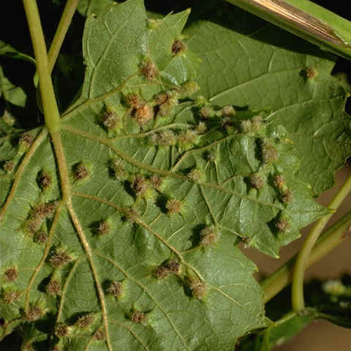 Zeigen sich die Gallen an den Unterseiten des Weinlaubs, sollten die Blätter umgehend abgepflückt und vernichtet werden.