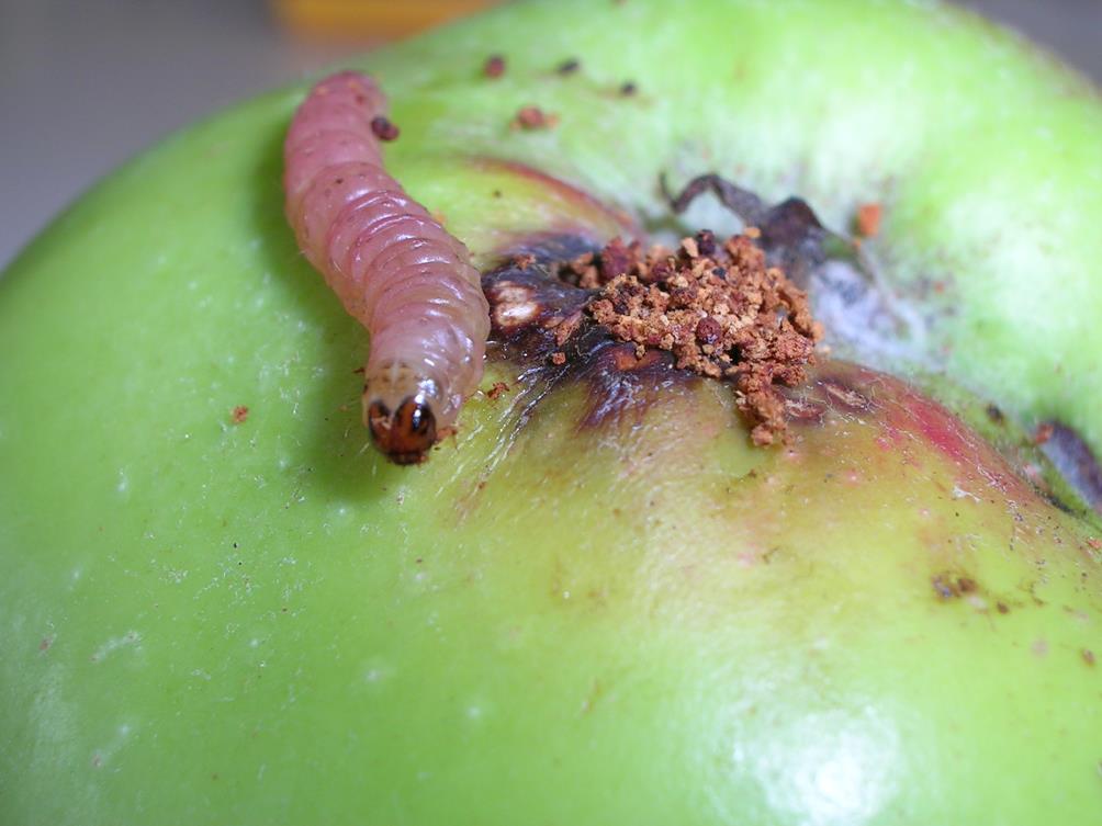 Apfelwickler-Larven im Apfel unerwünscht