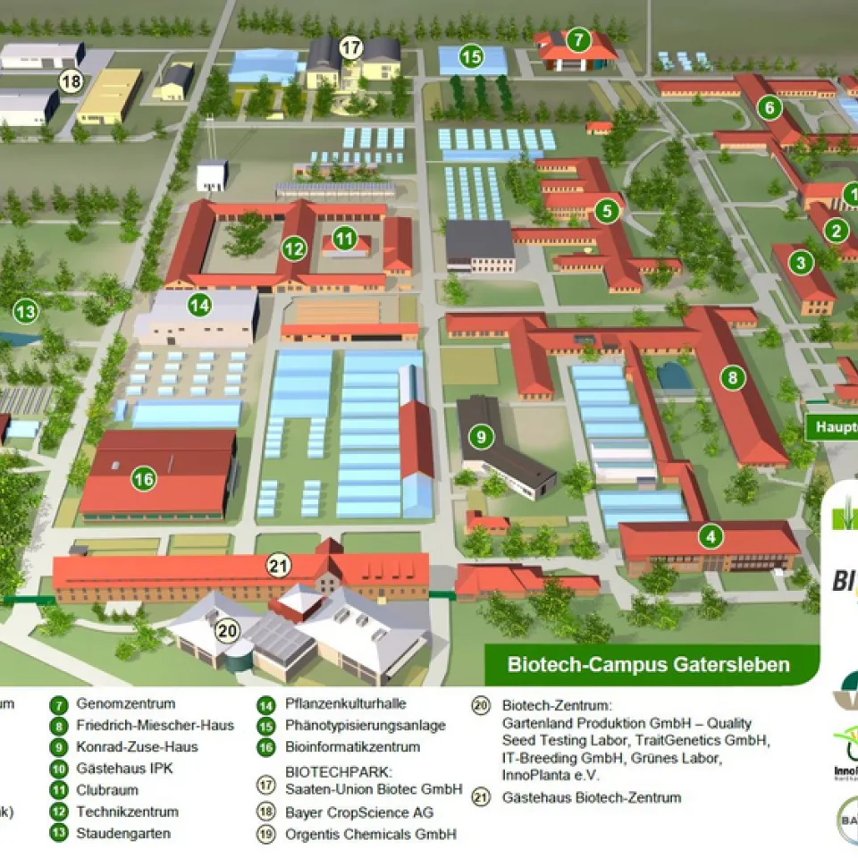 Im Biotech-Campus auf dem Institutsgelände haben sich in den letzten Jahrzehnten Züchtungsunternehmen, Biotechnologie-Start-ups und das Schülerforschungslabor „Grünes Labor Gatersleben“ angesiedelt.