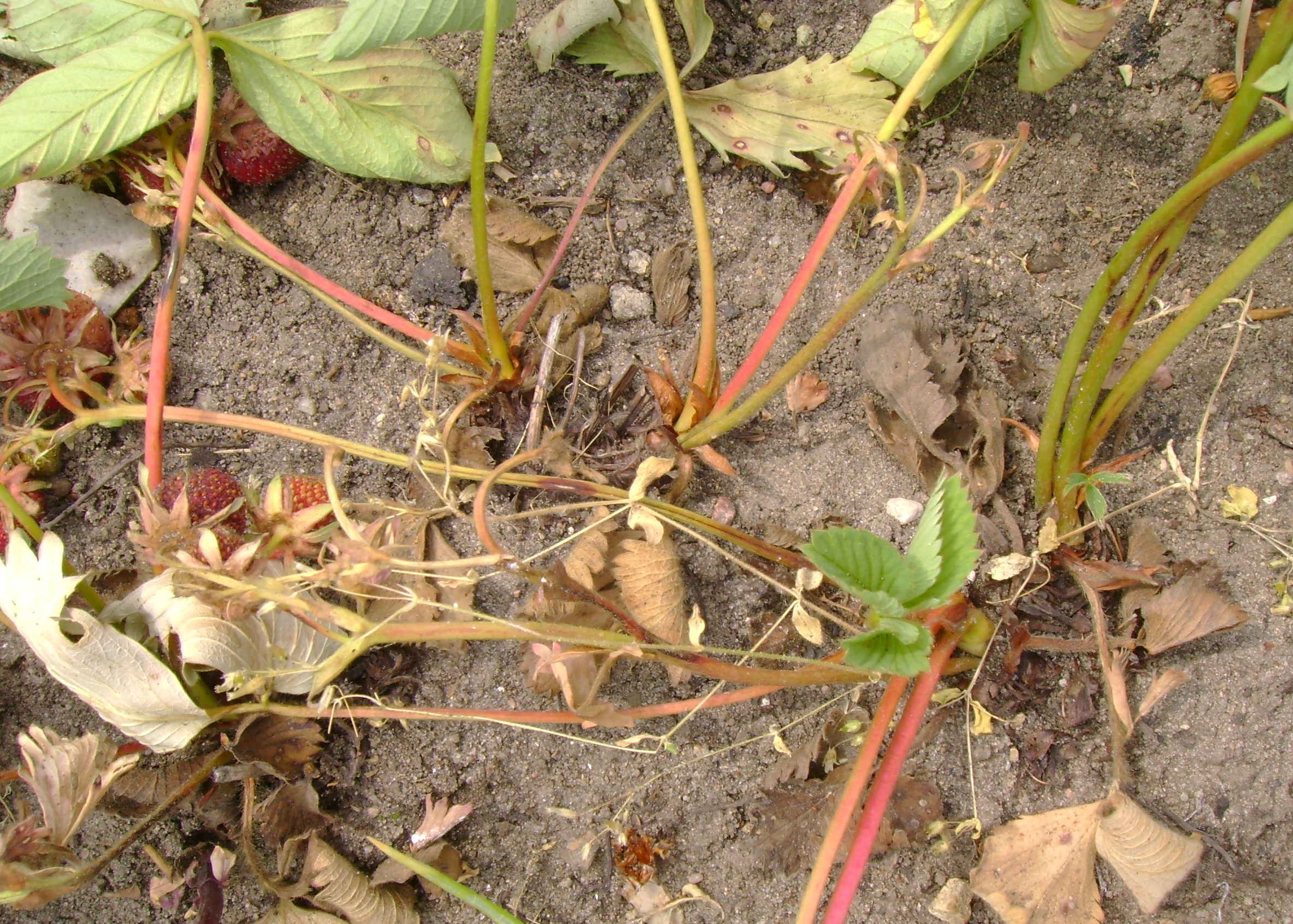 Diese Schäden sind besonders an Johannisbeeren, Stachelbeeren, Himbeeren und Erdbeeren zu beobachten. Auch an den Blättern können Absterbe-Erscheinungen auftreten, meist vom Rande her. Stachelbeeren sind weniger anfällig für Blattschäden als Johannisbeeren oder Erdbeeren. Vor allem bei Erdbeeren verstärken sich die Symptome noch, wenn der Boden trocken ist.