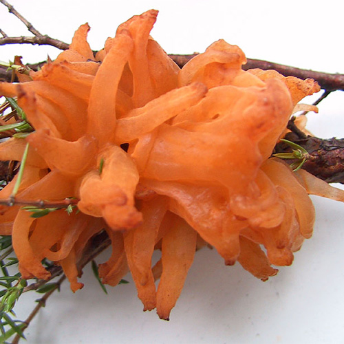 Bei dem Übeltäter handelt es sich um den pilzlichen Krankheitserreger Gymnosporangium sabinae. Es ist ein wirtswechselnder Pilz, der gleichzeitig Birnbäume und anfällige Wacholderarten befällt. Das sind annähernd die Hälfte aller Zierwacholder, an deren Trieben der Pilz überwintert.