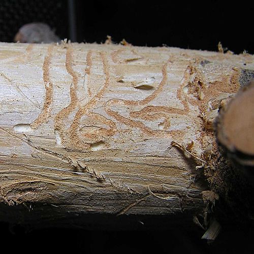 „Kontrollieren Sie abgestorbene Triebe. Wenn Sie einen Befall rechtzeitig erkennen, können Sie größere Schäden verhindern.“ rät Manfred Lehmann den Gartenbesitzern. Befallene Triebe sind hohl und mit Kot gefüllt. Das erkennt auch der Laie, wenn er den vertrockneten Trieb abbricht. Bei einzelnen befallenen Trieben reicht es aus, diese zu entfernen. Befinden sich aber am Stamm oder an kräftigeren Ästen bereits Ausfluglöcher von Käfern, muss das Käferholz ausgeschnitten oder der gesamte Baum vernichtet werden. „Idealerweise werden befallene Bäume vernichtet, bevor die neue Käfergeneration ausfliegt“, sagt Manfred Lehmann. Die Larven verpuppen sich nach ihrer Entwicklung im Splintholz und die Käfer fliegen Mitte Mai aus.