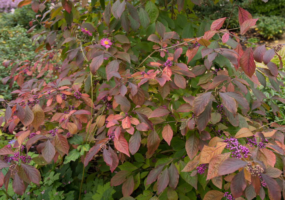 Auch wenn der Liebesperlenstrauch im Herbst sein buntes Laub abwirft, ist er ein toller Blickfang für jeden Garten. Denn seine lilafarbenen Beeren zaubern attraktive Reflexe in die eher triste Winterzeit. An den kahlen Ästen kommen diese sogar besonders gut zur Geltung.
