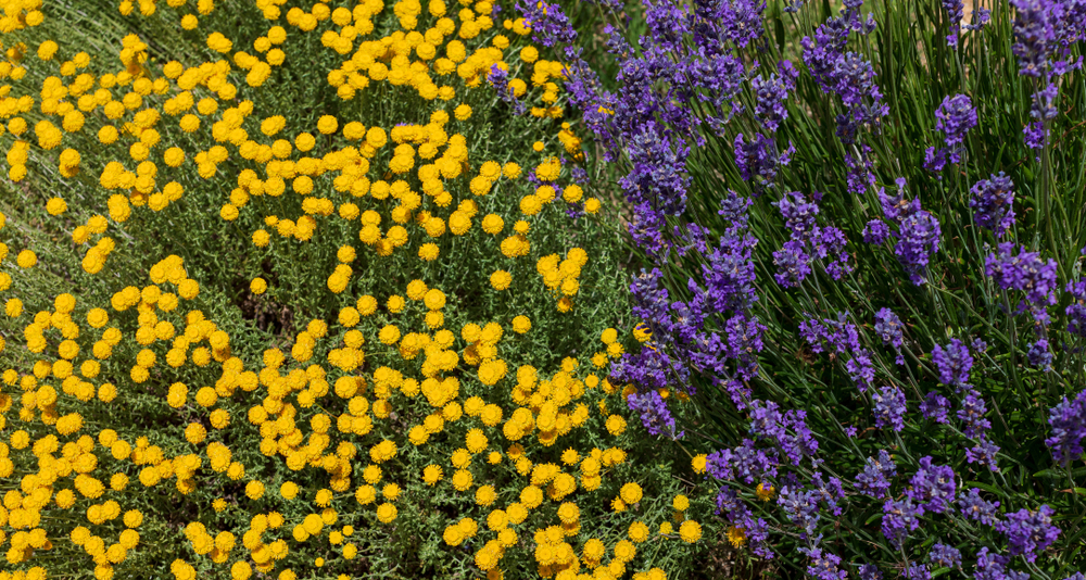 Das mediterrane Zypressenkraut ist ein Trockenheitskünstler und besticht neben seinem Aussehen mit seinem würzigen Aroma. Während Menschen Blätter und Blüten als Tee oder im Salat genießen, werden lästige Insekten vom Duft abgeschreckt.