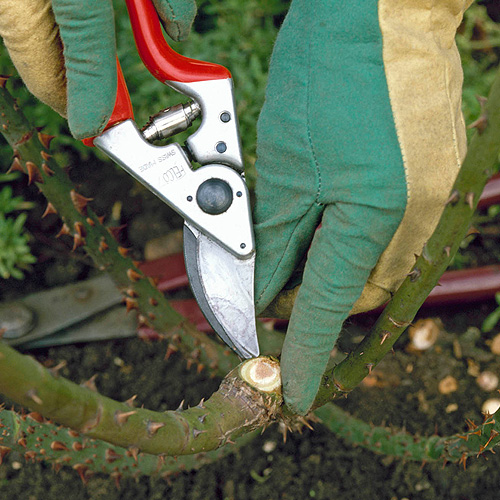 Mit dem alten Rosenholz werden auch Gelege von Schädlingen entfernt; zum Beispiel von noch nicht geschlüpften Blattläusen und Spinnmilben. Das mindert den Befallsdruck beim Austreiben der Pflanzen. Auch pilzlichen Krankheiten beugt der Rückschnitt vor: Risse in der Rinde alter Triebe sind offene Eintrittspforten für die verschiedensten pilzlichen Erreger.