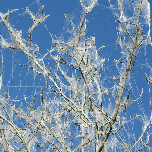 Gespenstische "Kunstwerke": Gespinstmotten verwandeln Bäume und Sträucher