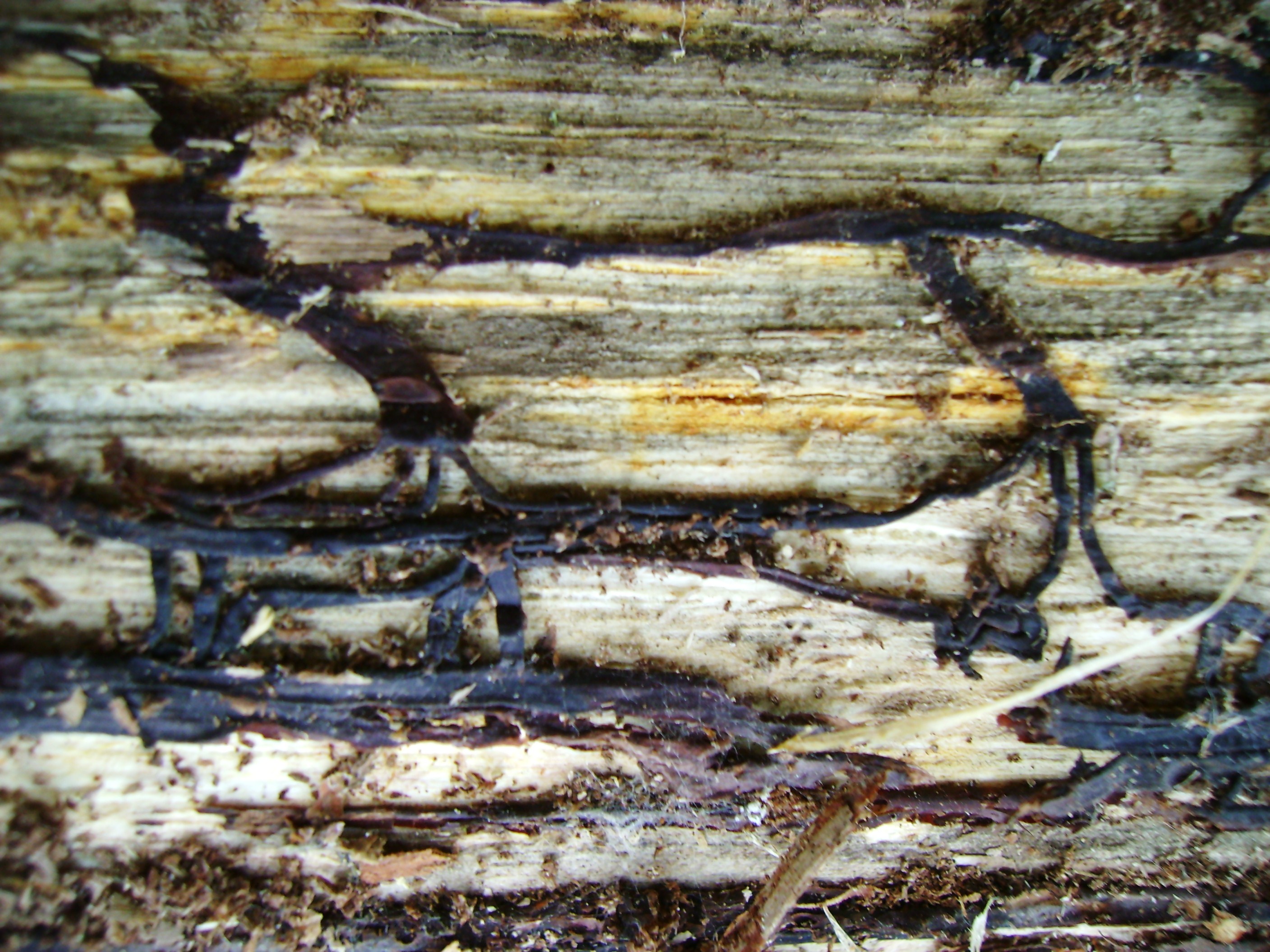 * wurzelähnliche einige Millimeterdicke äußerlich schwarze Myzelstränge, eine der verschiedenen Myzelformen des Hallimasch. Rhizomorphen kommen auch bei Mykorrhiza-Pilzen vor.