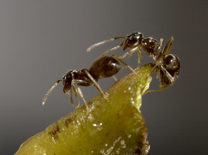 Ein Garten ohne Ameisen? Kaum vorstellbar. Sie legen Gänge unter Gehwegplatten und Rasenflächen, belästigen sonnenhungrige Gartenbesitzer und suchen auch in Küche und Speisekammer nach Futter. Der häufigsten heimischen Ameisenart, der schwarzgrauen Wegameise (Lasius niger), droht nun Konkurrenz von einwandernden, aggressiven Artverwandten. Die Gartenameise (Lasius neglectus) kann auch den Menschen Ungemach bereiten. Die Biologin Dr. Sylvia Cremer* mahnt zu einer genauen Beobachtung städtischer Ökosysteme, bevor die neue Ameisenart zu einem ernsthaften Problem wird.Lasius neglectus bevölkert städtische Grünflächen, sie dringt in Häuser ein und kann dort sogar elektrische Geräte und Leitungen beschädigen und dadurch Kurzschlüsse verursachen. Die Nester ihrer Superkolonien legt sie in Parks und Gärten am Fuß großer Pflanzen an. An Baumstämmen, an denen sonst nur vier oder fünf Ameisen zu sehen sind, laufen die Arbeiterinnen dann in 10 bis 20 Zentimeter breiten Straßenauf und ab. In der Baumkrone pflegen sie „ihre“ Blattläuse, damit diese möglichst viel Honigtau produzieren. Myriaden von Läusen saugen dadurch an den Blättern und hemmen das Wachstum. Ihre klebrige Ausscheidung bildet den Nährboden für schädliche Pilze.