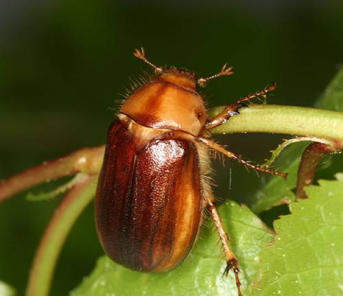 Der gelbbraune Junikäfer (Amphimellon solstitialis) ist mit 1,5 bis zwei Zentimetern Länge nur etwa halb so groß wie sein imposanter Verwandter, der Maikäfer. Beide gehören zu den Blatthornkäfern, den Scarabaeidae, und haben ähnlich große, etwa vier Zentimeter große, weiße Engerlinge. Deren unterirdische Entwicklung dauert zwei bis drei Jahre. In dieser Zeit fressen sie mit Vorliebe an den Wurzeln von Gräsern. Das wissen auch die Vögel, zum Beispiel Krähen: Im Spätsommer und Herbst graben sie mit ihren Schnäbeln durch die Grasnarbe kurz gemähter Wiesen und Rasenflächen, wenn ihre Suche nach dem proteinhaltigen Futter Erfolg verspricht. Eine biologische Bekämpfungsmethode, aber für den Rasen nicht besser als der Wurzelfraß der Engerlinge. Im Frühjahr verpuppen sich die Larven, und schon drei Wochen später fliegen die Käfer aus und fressen im Mai und Juni vor allem an Blättern von Laubgehölzen, allerdings nur für wenige Tage. In der Dämmerung umschwärmen sie häufig nicht nur ihre Artgenossen sondern auch Spaziergänger. Dabei fallen sie unangenehm auf, wenn sie sich mit ihren Beinen an diesen verhaken. Die Eiablage findet in der ersten Sommerhälfte am Boden statt.