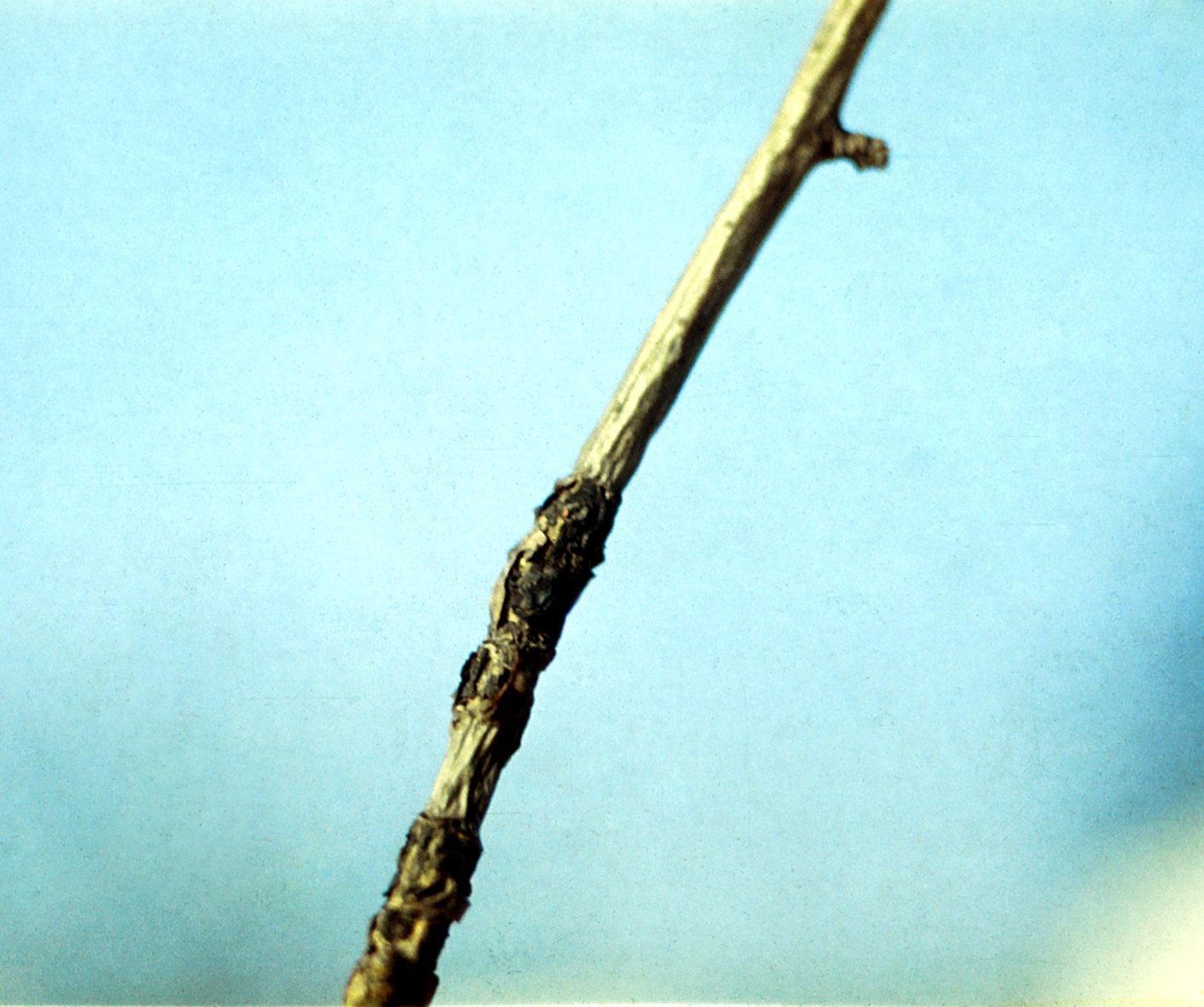 Der pilzliche Erreger befällt auch junge Zweige. Dann zeigen sich blasig aufgetriebene Stellen an der Rinde, die sich im Sommer oft schuppenartig ablösen. Dieses Schadbild ist beim Apfel seltener zu beobachten als bei der Birne.