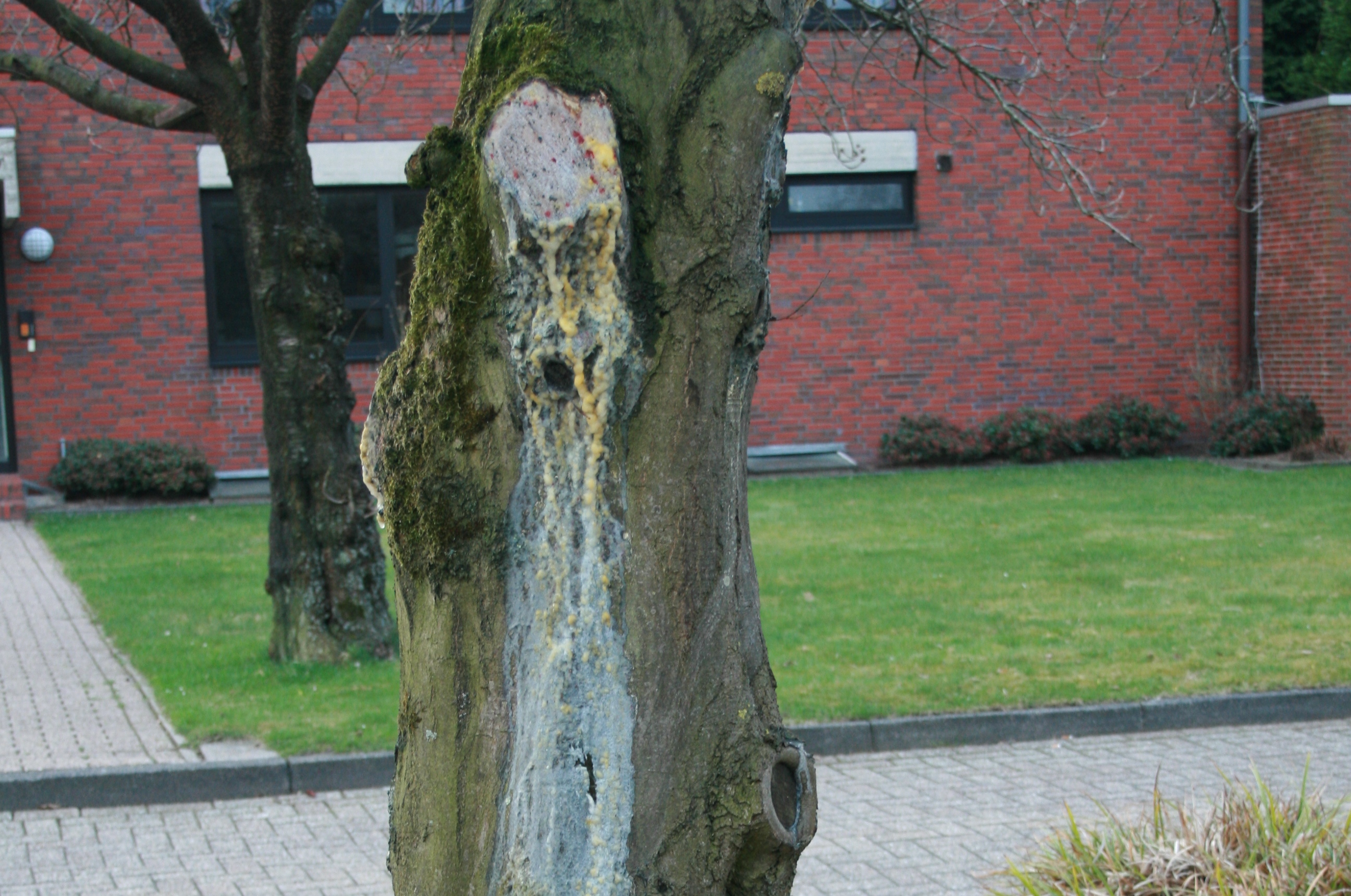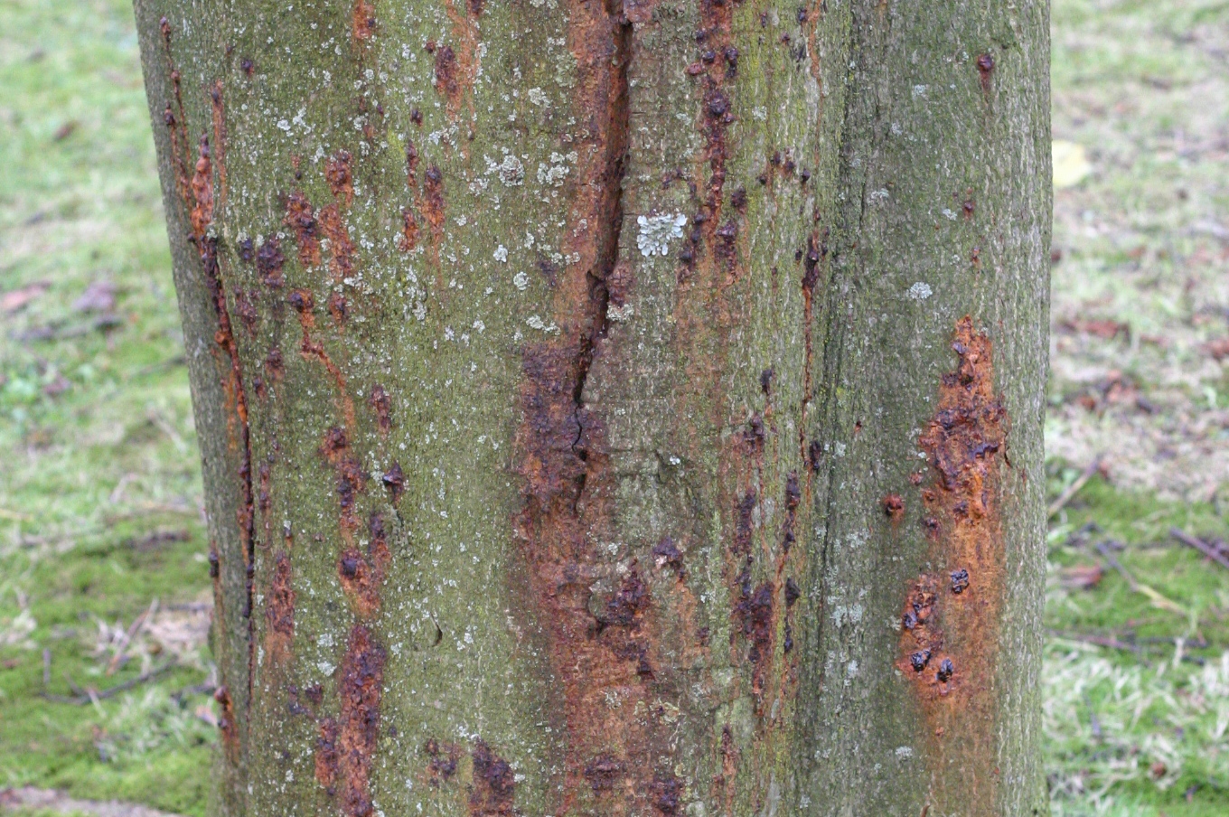 Seit einigen Jahren leiden Rosskastanien (Aesculus) unter auffälligen "Teerflecken" an den Stämmen, bei denen aus der Rinde dunkle, rostbraune Flüssigkeit in geringen Mengen austritt. Im weiteren Verlauf treten meist Risse und Absterbeerscheinungen auf. Die Ursache für diese ernstzunehmende Erkrankung ist vermutlich ein Befall durch Bakterien. Wirksame Gegenmaßnahmen sind nicht bekannt. Da die geschädigten Pflanzen unter Umständen in der Folge der Rindenschäden von holzzersetzenden Pilzen befallen werden, ist der Zustand der Pflanzen zu beobachten, und wenn die Standsicherheit gefährdet ist, kann eine Fällung nötig werden.