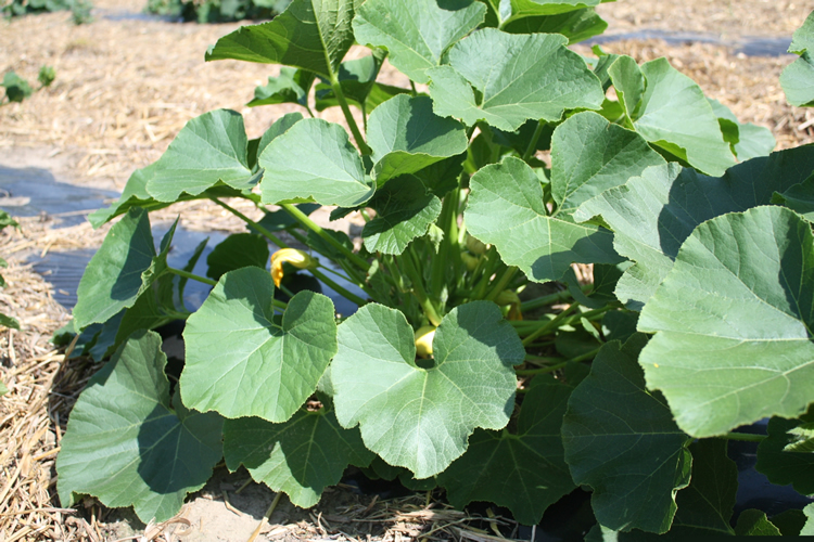 Das Gurkenmosaikvirus (Cucumber mosaic virus) wird durch Blattläuse übertragen. Erkennungszeichen sind in der Regel gelbgrüne Flecken auf den jungen Blättern. Sie kräuseln sich an der Blattspreite. Die Früchte sind gescheckt und verformen sich. Der Ertrag kann bei einer frühen Infektion ausbleiben. Das Virus überwintert in vielen Unkräutern und Zierpflanzen oder auch in Gemüsearten. Zur Vorbeugung ist es deshalb wichtig, Unkräuter und Blattläuse von Anfang an fernzuhalten, Die Blattläuse schädigen die Pflanzen nicht nur durch Übertragung von Krankheiten sondern auch durch ihre Saugtätigkeit. Auch Schnecken, Erdraupen und Feldmäuse fressen gerne an den Kürbispflanzen und sind deshalb im Kürbisfeld nicht gern gesehen. Auch vor Echtem und Falschem Mehltau sind Kürbisse nicht sicher. Diese Pflanzenkrankheiten werden durch Pilze hervorgerufen. Der Echte Mehltau siedelt sich auf der Blattoberfläche an. Er breitet sich bei trockenen und sonnigen Witterungsbedingungen besonders stark aus. Der Falsche Mehltau liebt hingegen die Feuchtigkeit. Gelbe Flecken auf der Blattoberseite sowie ein Pilzrasen auf der Blattunterseite sind typische Symptome. Das Pilzgeflecht der Mehltaupilze ist in der Regel weißlich-grau. Innerhalb kürzester Zeit breiten sich die Pilzkolonien soweit aus, dass die Blätter komplett bedeckt sind und befallene Blätter absterben. Es kann auch zu Wachstumsstörungen und zum Verfaulen der Früchte kommen. Ein solch starker Befall stellt sich in der Regel erst ab dem Spätsommer, also kurz vor der Ernte, ein. So halten sich die Schäden in der Kultur in Grenzen.