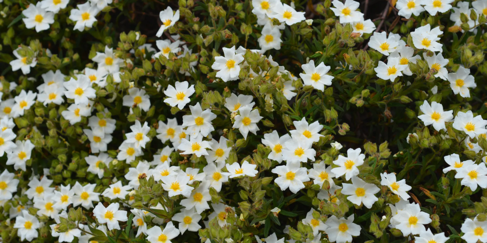Zistrosen sind eine Pflanzengattung aus der Familie der Zistrosengewächse (Cistaceae). Im Mittelmeerraum wachsen die Halbsträucher in freier Natur auf nährstoffarmen und trockenen Böden. Volle Sonne und hohe Temperaturen machen den Pflanzen überhaupt nichts aus. Ihr grünes bis graugrünes Laub verströmt einen intensiven, würzig-herben Duft. Die einfachen Schalenblüten können weiß, zartrosa oder kräftig pink gefärbt sein. Einige Arten weisen dunkelrote Basalflecken auf, die sehr dekorativ sind. Die Blütenblätter sind hauchdünn und oft zerknittert. Auffällig sind die gelben Staubgefäße in der Mitte der Blüten. Diese werden gerne von Insekten aller Art besucht. Eine Besonderheit ist, dass sich jede Blüte nur für einen Tag öffnet und in der Nacht abgeworfen wird. Durch die Vielzahl an Blütenknospen fällt das aber gar nicht auf. Im Gegenteil: Von Mai bis etwa Juli sind die Halbsträucher ein einziges Blütenmeer.