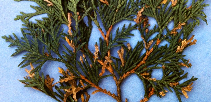 Braune Zweige und Triebspitzen an Lebensbaum und Wacholder werden nicht nur, wie oft vermutet, durch Frostschäden oder Krankheiten hervorgerufen. Bei der Diagnose solcher Schäden ist hier ebenso an die Folgen eines Minierfraßes von Raupen zu denken. Das Auftreten der Schädlinge ist nicht regelmäßig gleich stark. So kann nach vielen Jahren eines geringeren Auftretens örtlich wieder ein verstärkter Befall zu beobachten sein.Braune und gelbe Zweigteile am Lebensbaum