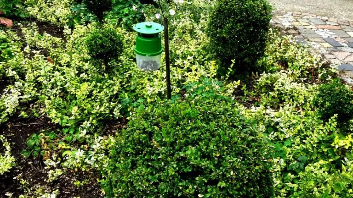 Für eine erfolgreiche Abwehr des Schädlings ist es wichtig, die Gehölze ständig zu beobachten. Hier ist es empfehlenswert, auch die Zweige auseinander zu biegen und in das Innere der Büsche zu schauen. Das beginnt im Frühjahr ab dauerhaften Temperaturen von etwa 10 Grad Celsius, wenn die überwinterten Raupen erwachen. Dann sind auch die ersten Bekämpfungsmaßnahmen nötig. Bald danach werden die Pheromonfallen aufgestellt, um den Falterflug und das Auftreten der einzelnen Generationen zu überwachen. Hier gibt es bei manchen Gartenfreunden allerdings Missverständnisse: Sie glauben, dass die Fallen ein Bekämpfungsmittel sind. Die mit dem weiblichen Geschlechtshormon bestückten Fallen fangen nur die Männchen, was der Befallsermittlung dient. Die befruchteten Weibchen fliegen daran vorbei und legen ihre Eier in die Büsche. Etwa zehn bis 14 Tage nach dem Falterflug ist mit dem Schlupf der Jungraupen zu rechnen und damit der Termin für die nächsten gezielten Gegenmaßnahmen. Hier haben sich verschiedene Methoden etabliert: