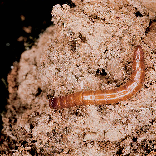 Die Larven des Saatschnellkäfers werden Drahtwürmer genannt und fressen die Wurzeln von Getreide, Mais, Zuckerrüben und anderen Pflanzen ab.