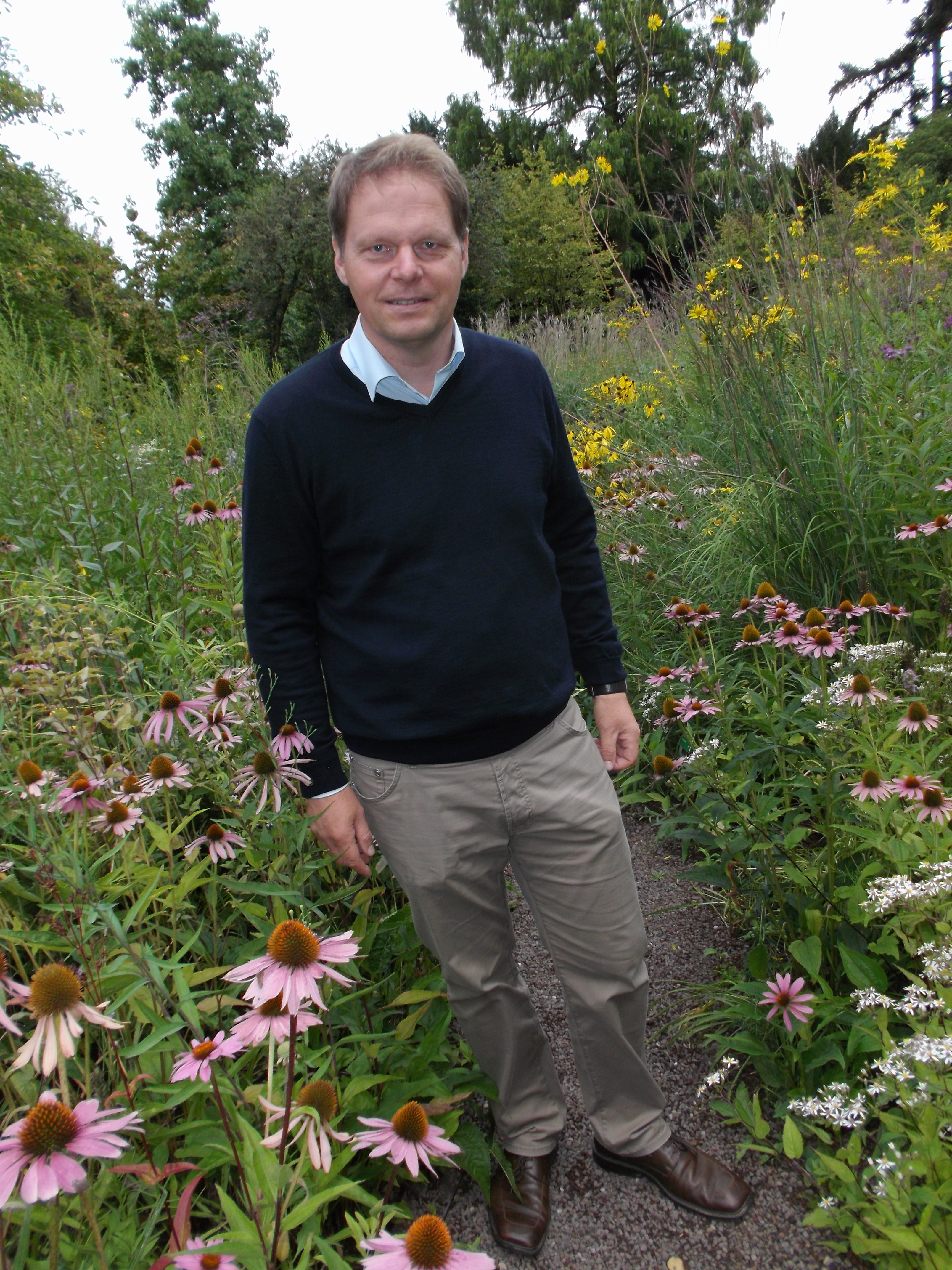 Taschentuchbaum, Gingko, Urweltmammutbaum, orientalische Platane verstärken die exotische Anmutung. Beiläufig berichtet Cassian Schmidt von einer Delegation aus New York, die sich bei ihm über die heimischen Präriepflanzen kundig gemacht hat, um sie anschließend in öffentlichen Parks wie der „Highline“ im Westen von Manhattan anzusiedeln. „Außer uns hat niemand diese Informationen, insbesondere zur Pflege über eine so lange Zeit.“