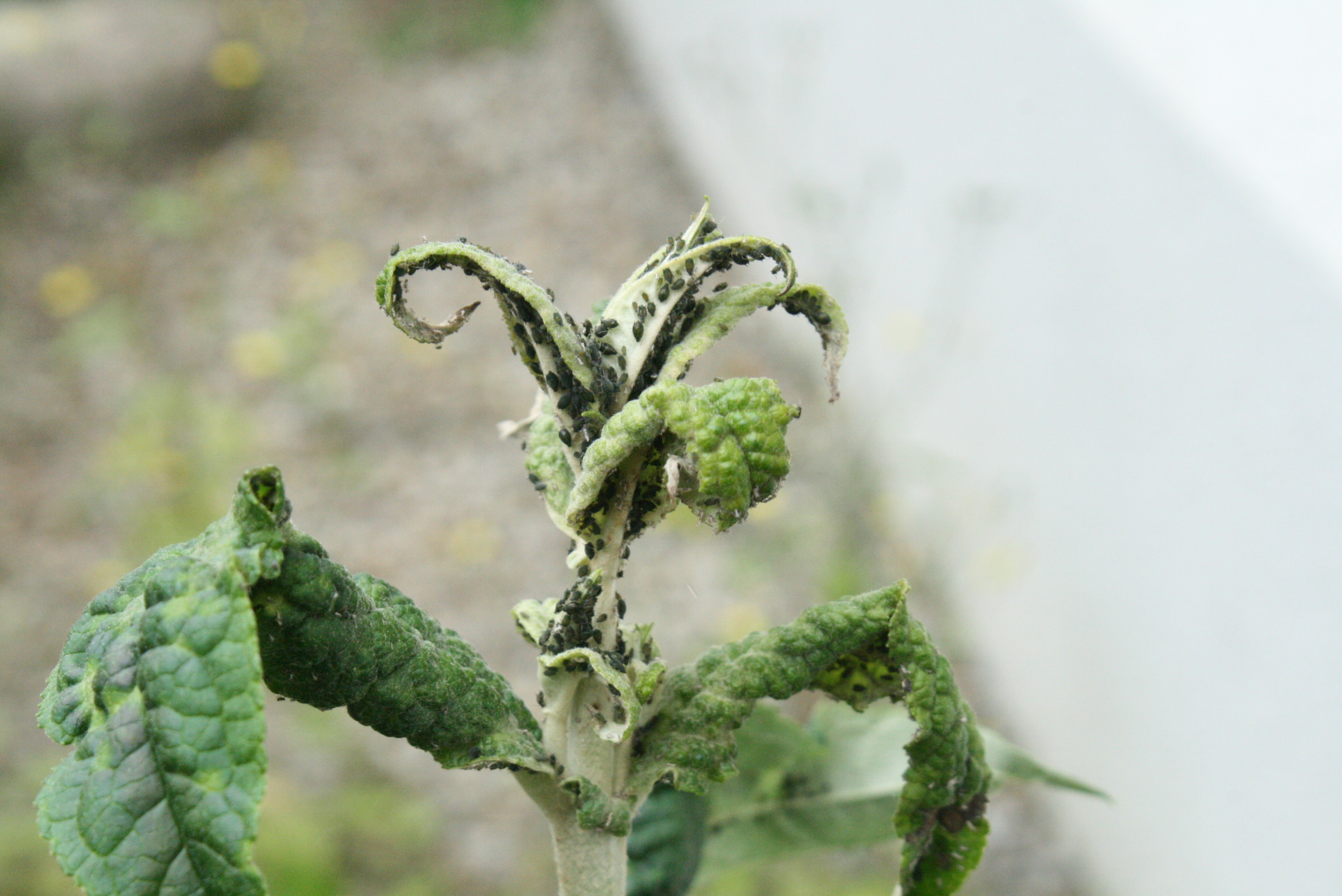 Häufig ist an den geschädigten Pflanzen ein starker Befall durch die Baumwollblattlaus Aphis gyssopii zu beobachten. Auch an Pflanzen, auf denen keine deutlich erkennbaren Blattläuse sitzen, können die Symptome entstehen. Bei genauerer Begutachtung sind allerdings auch an diesen Pflanzen einzelne Blattläuse zu finden, die versteckt unter den jüngsten Blättern in den Triebspitzen (Terminalen) sitzen. Die Baumwollblattlaus kann unterschiedliche Farben von gelblich über dunkelgrün und lilabraun bis fast schwarz annehmen.
