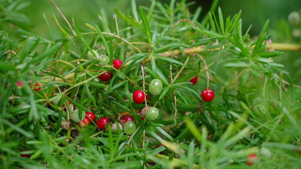 Spargel (Asparagus officinalis), der Gemüsespargel oder Gemeiner Spargel, ist erstmals als Kandidat für die „Giftpflanze des Jahres“ ausgewählt worden. Fans des königlichen Stangengemüses können dennoch aufatmen. Denn das giftige Sparginin sowie verschiedene Glykoside sind nur in den leuchtend roten Beeren der Pflanze enthalten. Auf Spargelfeldern dürften die giftigen Beeren aber kein Problem darstellen. Denn sie werden nur von weiblichen Blüten gebildet. Beim Spargelanbau werden jedoch nur männliche Pflanzen eingesetzt.
