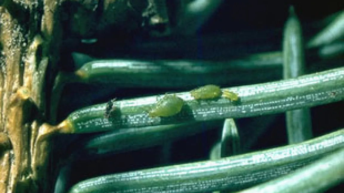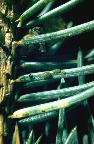 In milden Wintern saugen die Läuse bereits ab Februar an Fichtennadeln, die später braun werden und im Sommer abfallen. Den Befall kann man so prüfen: Man klopft die inneren unteren Zweige über weißem Papier ab. Wenn auf einem A4-Blatt vier und mehr Läuse gelandet sind, lohnt der Einsatz von zugelassenen Pflanzenschutzmitteln. Die Sitkafichtenlaus hat auffällig rote Augen und einen grünen, rund 1,8 Millimeter langen Körper.
