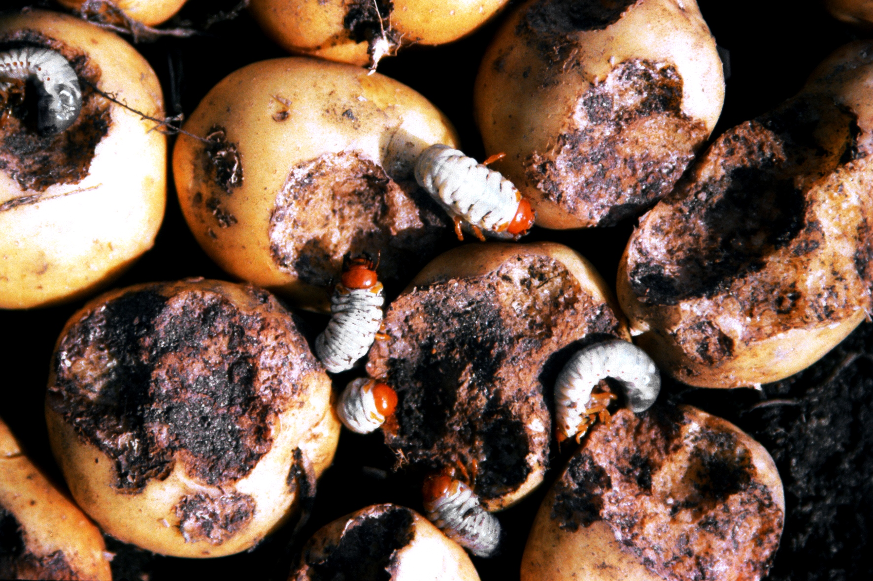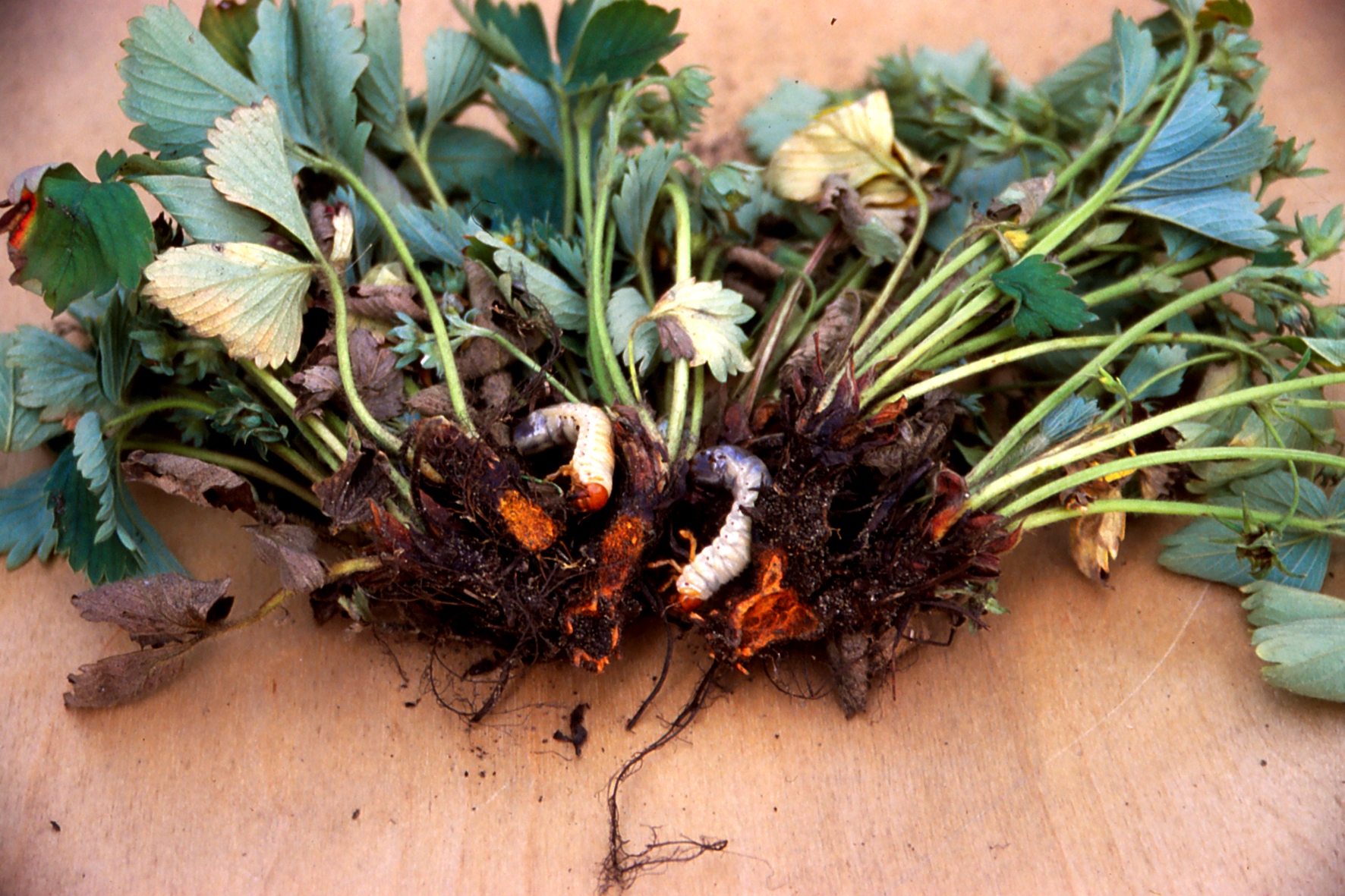 Wenn nach Maikäferflugjahren die Pflanzen trotz guter Wachstumsbedingungen welken, könnten Engerlinge die Schadensverursacher sein. Im Gartenbau fressen sie mit Vorliebe an Erdbeeren und Salat, aber auch Bohnen, Kohlrabi und Sommerblumen. Rasenwurzeln und die Knollen von Gladiolen und Kartoffeln werden nicht verschmäht. Wenn die Pflanzen in den Saat- oder Pflanzreihen hintereinander nach und nach abwelken, sollte man Verdacht schöpfen. Aus dem Obstbau sind auch Schäden durch Nagefraß an den Wurzeln besonders bei Jungbäumen bekannt. Auf größeren Rasenflächen weisen Krähen, die den Boden regelrecht umwühlen, auf Beute im Boden hin. Je nach Kultur lassen einer bis fünf Maikäfer-Engerlinge pro Quadratmeter erhebliche Pflanzenschäden erwarten. Die ausgewachsenen Engerlinge verpuppen sich im Sommer des dritten beziehungsweise vierten Entwicklungsjahres in einer 20 bis 40 Zentimeter tief im Boden gelegenen Höhle. Der Jungkäfer schlüpft schon nach sechs Wochen, bleibt aber bis zum kommenden Frühjahr im Boden.