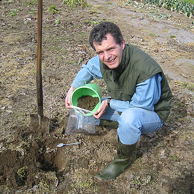 Egal ob Gemüse- oder Blumenbeet, Rasen oder Obstgarten - um eine Bodenprobe zu entnehmen, benötigt man lediglich einen Spaten, einen Löffel und eine Tüte. Zunächst wird mit dem Spaten oder Löffel ein Loch bis zur gewünschten Tiefe ausgehoben, etwa soweit wie die jeweiligen Wurzeln vordringen. Dann nimmt man gleichmäßig von den Seiten des Loches etwas Erde ab. Dazu sind 10 bis 15 Einzelproben an verschiedenen Stellen notwendig. Am Ende werden sie dann miteinander vermischt und ca. 500g davon in einen sauberen Plastikbeutel abgefüllt. Wenn das geschehen ist, schickt man die Probe an ein Untersuchungszentrum, zum Beispiel an die Landwirtschaftskammer Nordrhein-Westfalen in Münster www.landwirtschaftskammer.de.