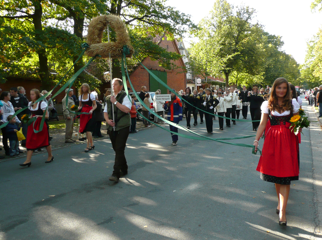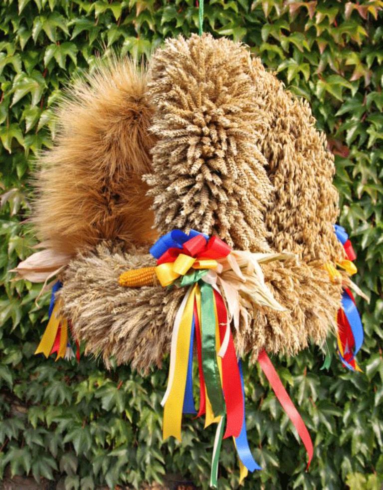 Erntepuppen aus Stroh zu Ehren des Getreides gibt es bis heute: Riesige Puppen aus Strohballen zieren viele Ortseingänge. Mancherorts binden die Erntehelfer aus den letzten Strohgarben eine Strohpuppe, die als Opfergabe auf dem Feld bleibt oder sogar verbrannt wird. Andere Bräuche sind der Erntedankumzug sowie Erntekrone oder –kranz. In diese Kronen oder Kränze werden übrigens am Gründonnerstag gesammelte Kränze aus Blumen und Kräutern eingeflochten. Sogar der Almabtrieb in den Bergen gehört zu den Erntebräuchen als Ausdruck des Dankes für gesundes Vieh. Volksfeste, Jahrmärkte und Hoffeste beziehen sich auf Erntedank.