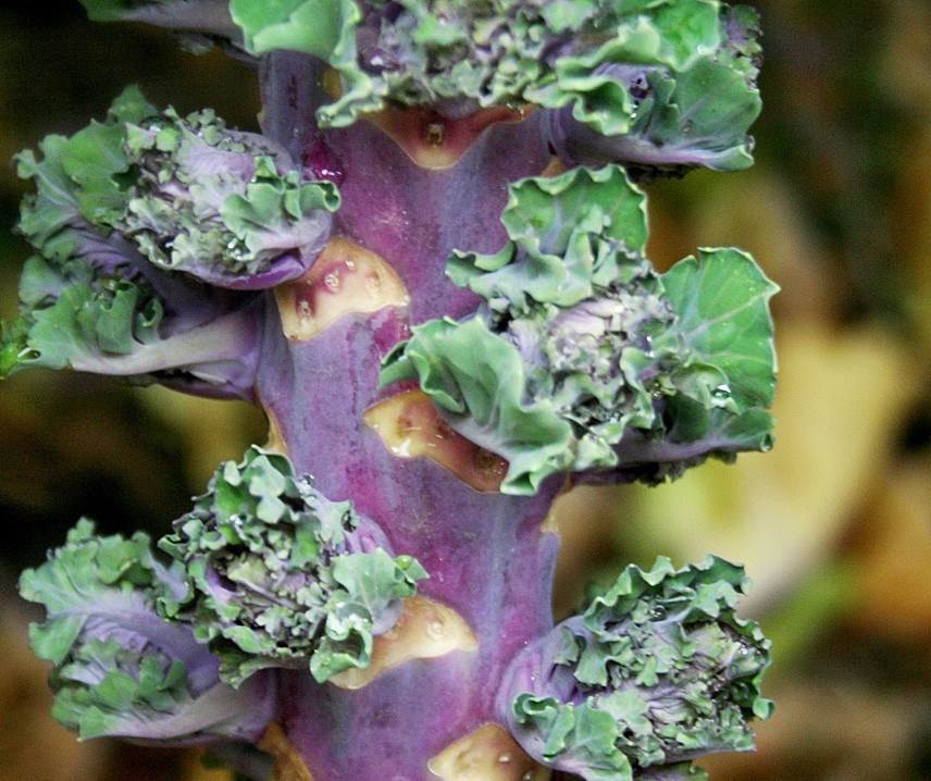 Grund genug, einmal genauer hinzusehen, was das Gemüse ausmacht. Seine Geschichte ist tatsächlich vergleichsweise jung. Es tauchte erstmalig 2010 in englischen Geschäften auf. Vorausgegangen waren rund 15 Jahre Züchtungsarbeit, um die Kreuzung aus Grün- und Rosenkohl in die heutige Form zu bringen. Die Pflanze ähnelt äußerlich einem Rosenkohl und wird 60 bis 100 Zentimeter hoch. In den Blattachseln wachsen die im Gegensatz zum Rosenkohl recht lockeren, stark gekrausten und grün bis blauvioletten Röschen. Sie haben einen Durchmesser von etwa 5 Zentimetern.
