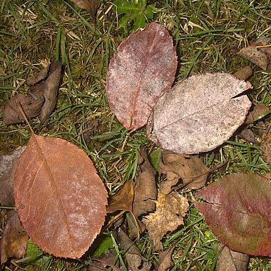 Als ich die gepressten Blätter zwei Wochen später wieder anschaute, fiel mir auf, dass manche nicht gut aussahen – sie waren von merkwürdigen weiß-grauen Flecken bedeckt. Deshalb ging ich wieder in den Garten und sammelte einige neue Blätter. Auch dort waren an einigen, z. B. von einem Birnbaum, weiße Flecken zu sehen. Als ich meinen Opa fragte, was dies sein könnte, sagte er mir, es sei Mehltau. Ich fand ihn auch bei einigen anderen Pflanzen wie z. B. Eiche, Herbstaster und Goldrute. Das machte mich neugierig, und ich wollte mehr über die Krankheit an den Blättern wissen.