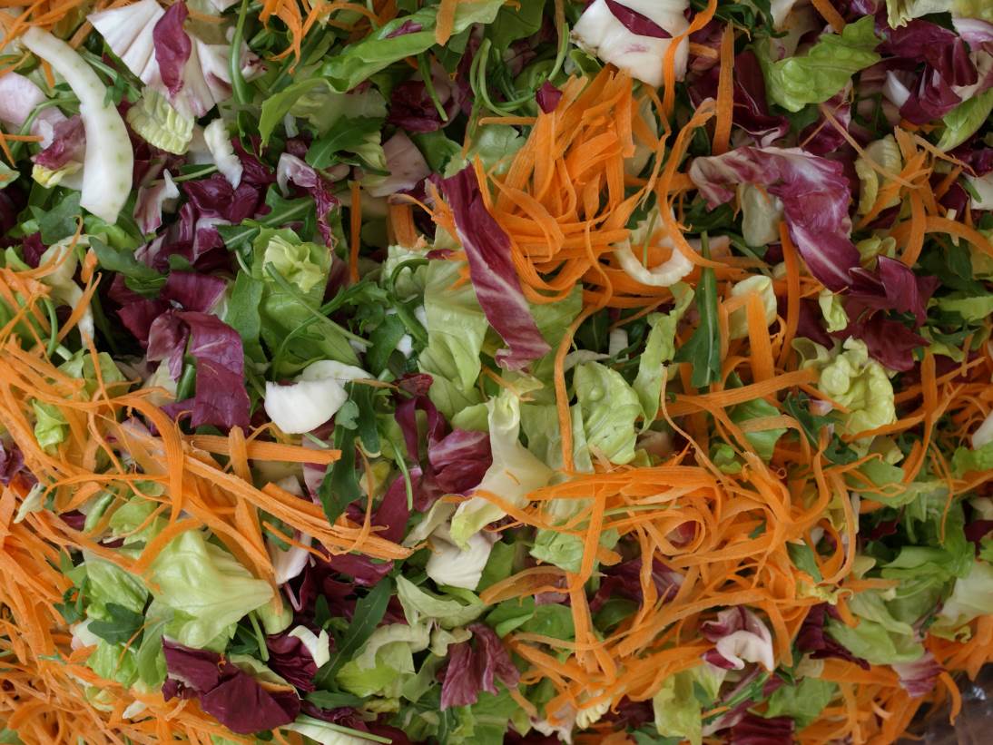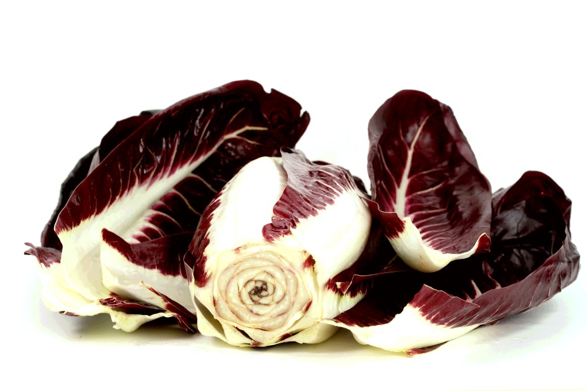 Nach ein paar kühleren Nächten färben sich die inneren Blätter kräftig rot. Die äußeren Blätter sind überwiegend grünlich, Erntehelfer entfernen sie bereits bei der Ernte. Verbraucher sollten im Laden auf knackige und unverletzte Blätter achten. In Frischhaltebeuteln verpackte Radicchio-Köpfe bleiben im Kühlschrank ein bis zwei Wochen frisch.