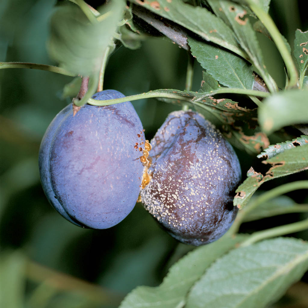 Qualitätsware mit einer möglichst langen Haltbarkeit muss absolut frei von Krankheiten und Schädlingen sein. Anbauer achten während des Wachstums unter anderem auf Pflaumenwickler sowie Pflaumenlaus und bekämpfen sie, wenn nötig. Die bedeutendste Pilzkrankheit ist die Monilia-Fruchtfäule. Sie entwickelt sich in den Bohrlöchern von Pflaumenwicklermaden oder Wespen. Die befallenen Früchte müssen entsorgt werden, weil die darauf wachsenden Pilzsporen sonst weitere Früchte infizieren würden. Man kann mit Fungiziden vorbeugen. Die gefährlichste Virose ist die Scharka-Krankheit. Sie wird von saugenden Insekten wie Pflaumenläusen übertragen und ist chemisch nicht bekämpfbar. Grünliche Ringe auf den Blättern bei starker Ausprägung auch violette Blattflecken, und gummiartige Früchte mit Einsenkungen und Verkrüppelung sind typische Symptome. Die Früchte können nicht mehr vermarktet werden. Befallene Bäume müssen umgehend aus den Plantagen entfernt und am besten durch tolerante Sorten ersetzt werden.