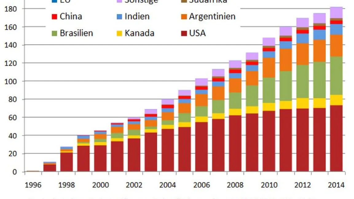 Anbauflächen für gentechnisch verbesserte Pflanzen steigen 2014 auf 181 Millionen Hektar
