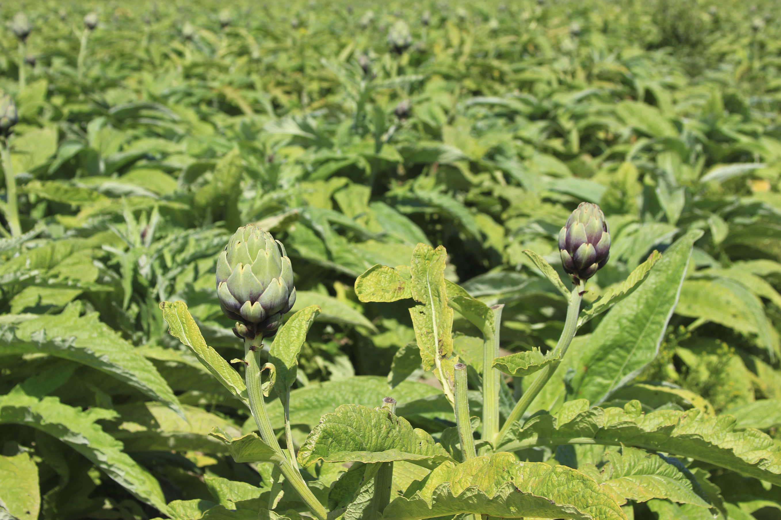 Als ursprünglich aus Nordafrika und dem Mittelmeerraum stammende, Wärme liebende Pflanze dankt die Artischocke einen tiefgründigen sonnigen, windgeschützten Standort mit guter Nährstoffversorgung. In der Regel wird die Artischocke zweijährig angebaut. Im ersten Jahr bildet sie eine Blattrosette, ab dem zweiten Jahr treibt aus der Blattrosette ein Stängel mit Blütenständen aus. An geeigneten Standorten erscheinen die Blüten auch schon im ersten Jahr. Die Oberseite der Blätter ist nur spärlich behaart, die Unterseite ist dagegen mit einem dichten weißen Haarkleid versehen. Artischocken haben sehr kräftige und lange Wurzeln. Im großflächigen Anbau achten die Landwirte darauf, dass keine anderen Korbblütler, wie zum Beispiel Sonnenblumen, auf die Artischocke folgen und Fruchtfolgekrankheiten so vermieden werden. Zum Fressen gern hat die Schwarze Bohnenblattlaus die fleischigen Blätter und siedelt sich gleich in großen Kolonien auf den Artischocken an, um sofort Eier abzulegen. Ein anderer hungriger Fressfeind ist die Wühlmaus, die ebenfalls in Scharen auftritt und die Ernte misslingen lassen kann.