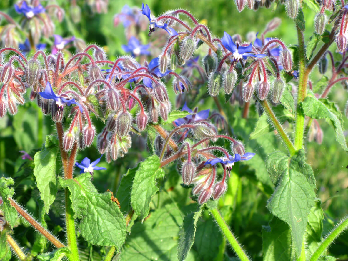 Gurkenkraut, so wird der Borretsch im Volksmund oft genannt, da er nach frischen grünen Gurken riecht. Auch Blauhimmelstern, Herzfreude und Augenzier sind als Namen bekannt. Am bekanntesten ist wohl seine Verwendung in der Frankfurter Grünen Soße, aber auch in der Naturheilkunde wird er oft angewandt.Borretsch (Borago officinalis) gehört zur Familie der Raublattgewächse, zu denen beispielsweise auch das Lungenkraut oder der Beinwell gehören. Eine der Namenserklärungen führt zum lateinischen Wort Borra (Gewebe aus rauer Wolle), da seine Stängel und Blätter rau behaart sind; ältere Blätter fühlen sich durchaus auch stachelig-kratzig an.
