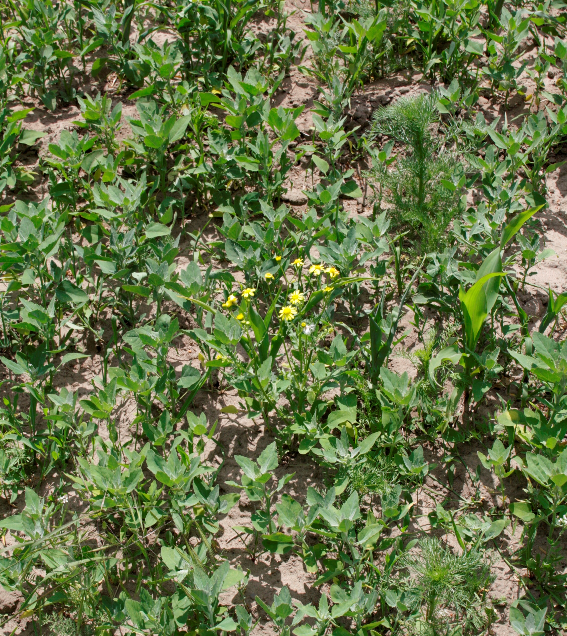 Tja, der Acker ist schön grün, aber nicht mit der Kulturpflanze, sondern mit dem giftigen Jakobskreuzkraut, mit der wilden Kamille, mit Melde und anderen Unkräutern. Sie konkurrieren mit dem Mais um Nährstoffe und Wasser und kosten Ertrag bei der Kulturpflanze. Das Schaufenster zeigt sehr gut, wie es wäre, wenn wir keine Pflanzenschutzmittel mehr anwenden würden.